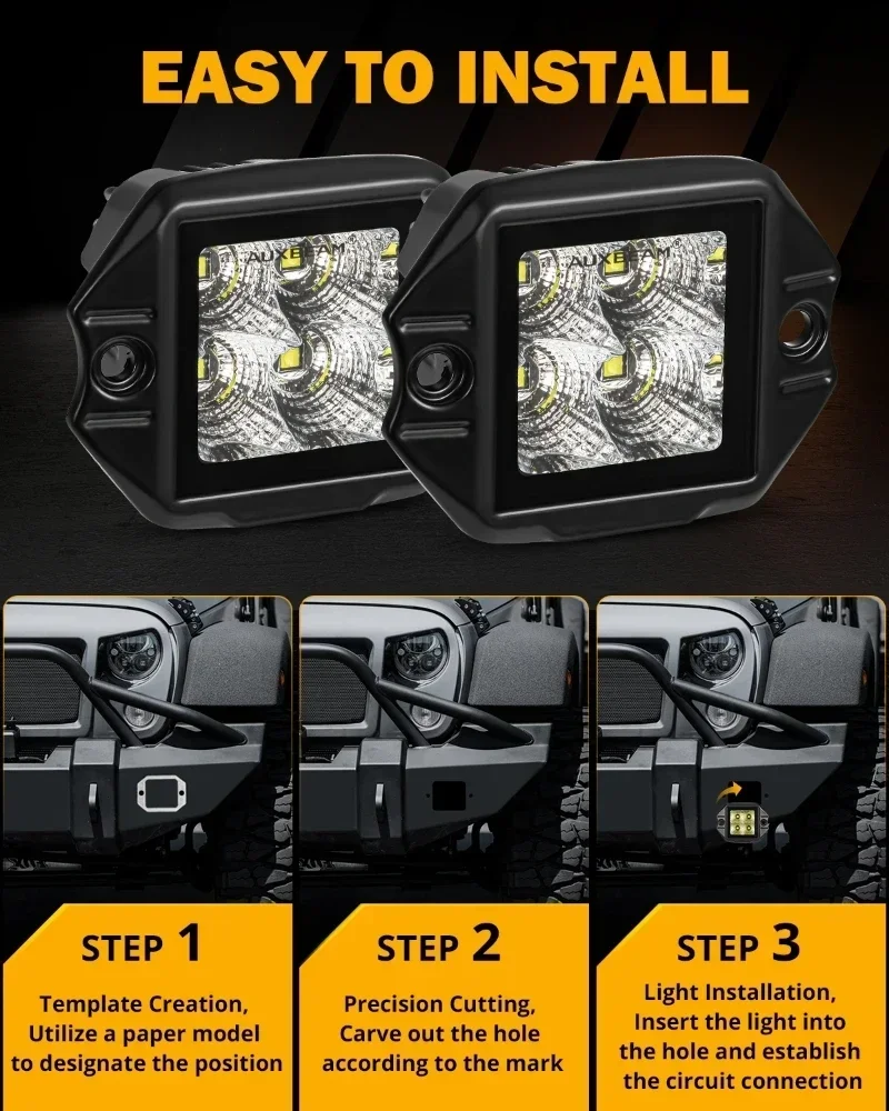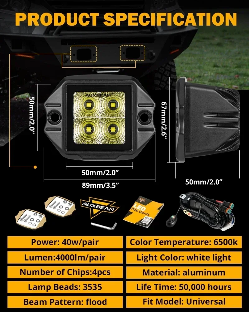 Le projecteur à LED encastré AUXBEAM de 3,5 pouces est un accessoire de haute qualité pour les camions, les Jeep SUV et les 4×4. Doté d’un câblage de prise DT, il offre une connexion sûre et durable. Ce projecteur est idéal pour les activités en plein air et les travaux de construction grâce à sa résistance aux vibrations et à son étanchéité IP68. Avec une puissance de 40W et une intensité lumineuse de 4800LM, il offre une grande visibilité même dans les conditions météorologiques les plus difficiles. Sa conception en aluminium lui confère une excellente dissipat