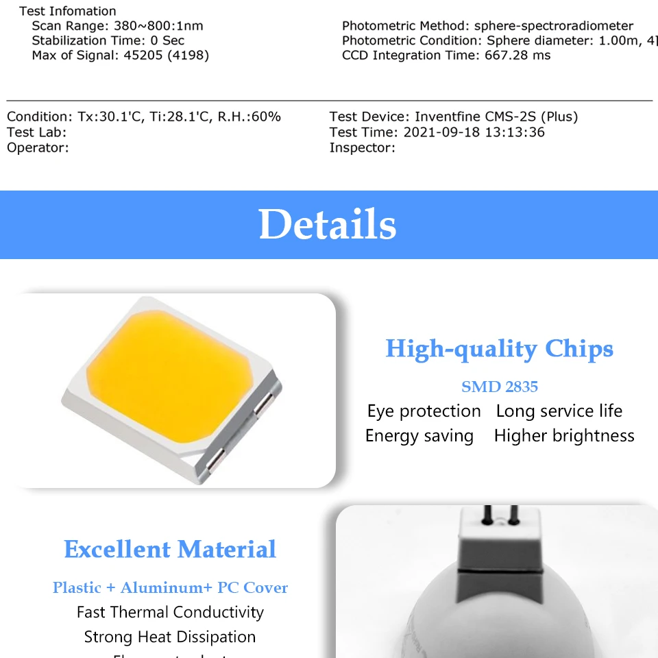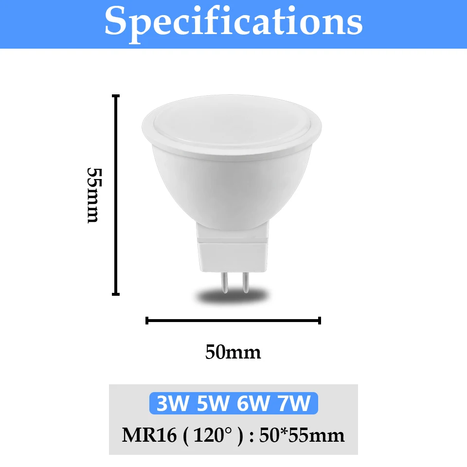 - Taille: MR16: Ø50*55mm