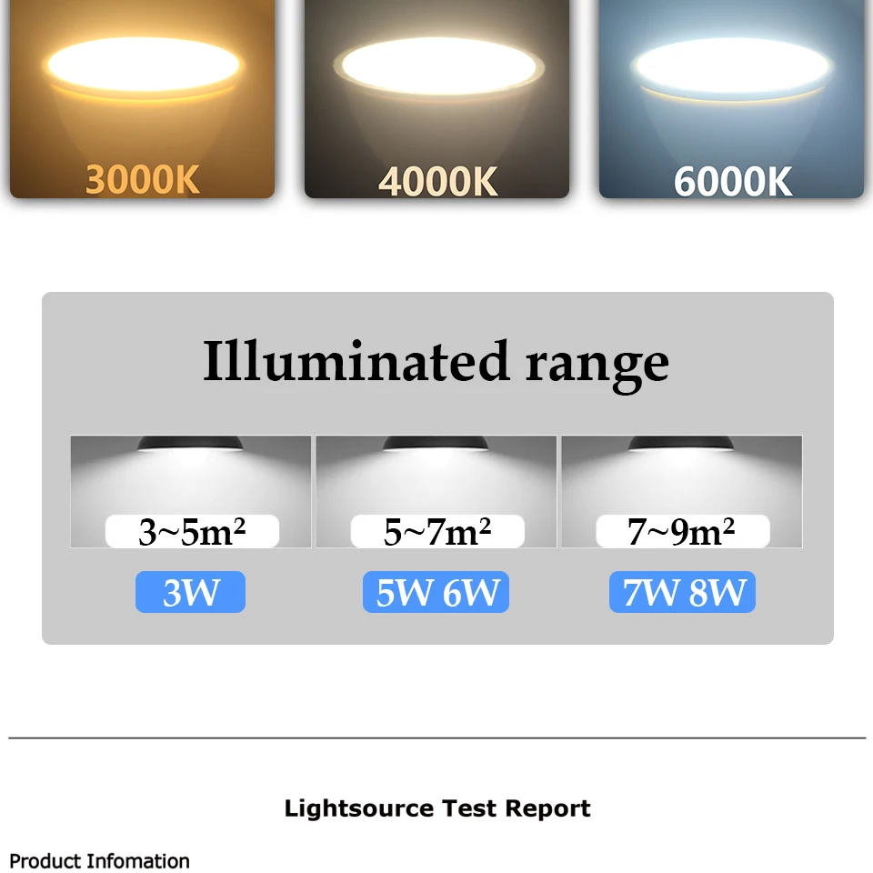 - Couleur et température: blanc chaud (3000K), lumière du jour (4000K), blanc froid (6000K)