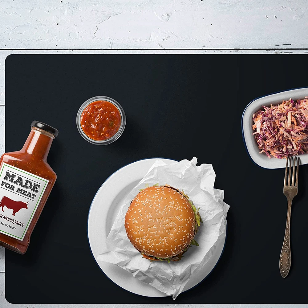 Grâce à sa grande taille et à sa qualité supérieure, ce tapis en silicone peut être utilisé de différentes manières : en tant que tapis à pâtisserie, protecteur de comptoir ou même comme collecteur de désordre. Sa surface antiadhésive et son adhérence électrostatique naturelle en font un accessoire polyvalent pour votre cuisine.