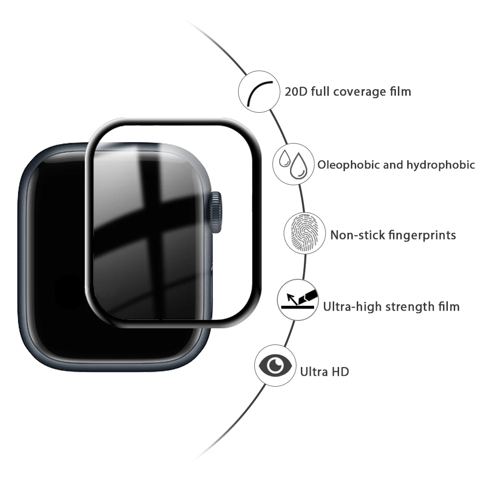 Protecteur d’écran compatible avec Apple Watch 49mm, 45mm, 41mm, 44mm, 42mm, 40mm, 38mm Série SE, Ultra, 8, 7, 6, 5, 4, 3. Ne convient pas aux autres tailles. Veuillez vérifier la taille de la montre avant de commander.