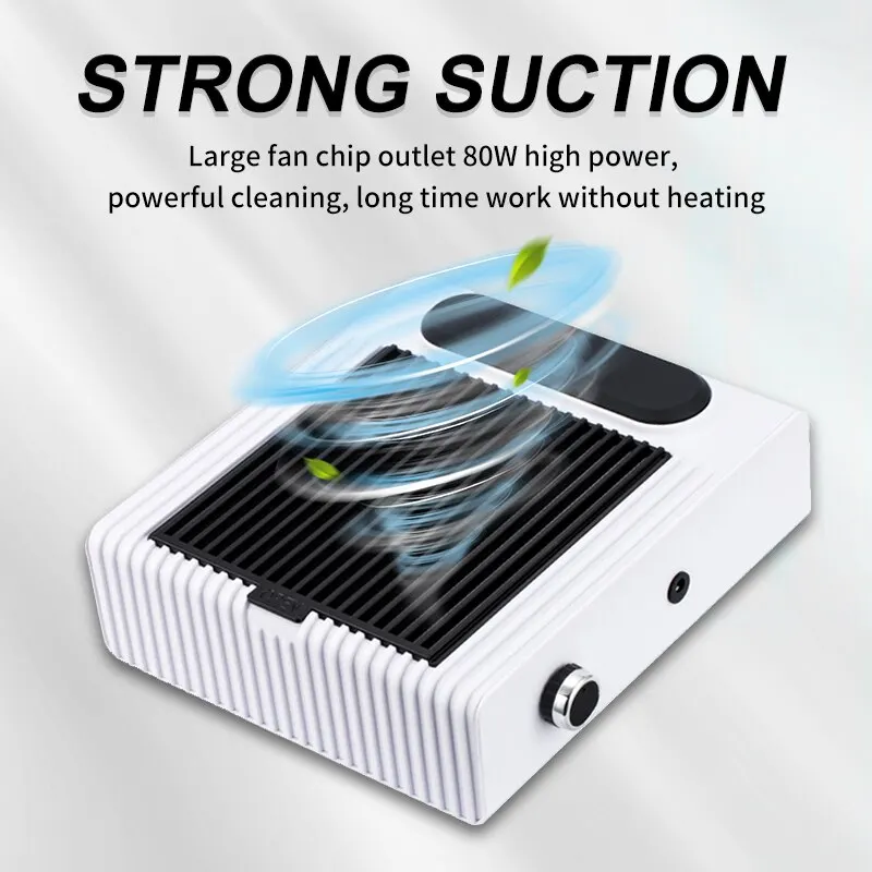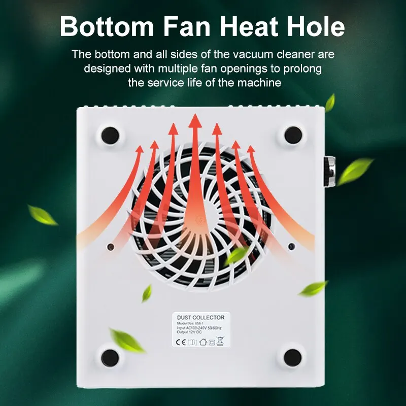 - DISSIPATABLE DE CHALEUR: le fond de l’aspirateur à ongles et autour de la conception de l’orifice de refroidissement, peut garantir que la ventilation de l’aspirateur est, prolongeant la durée de vie de la machine.