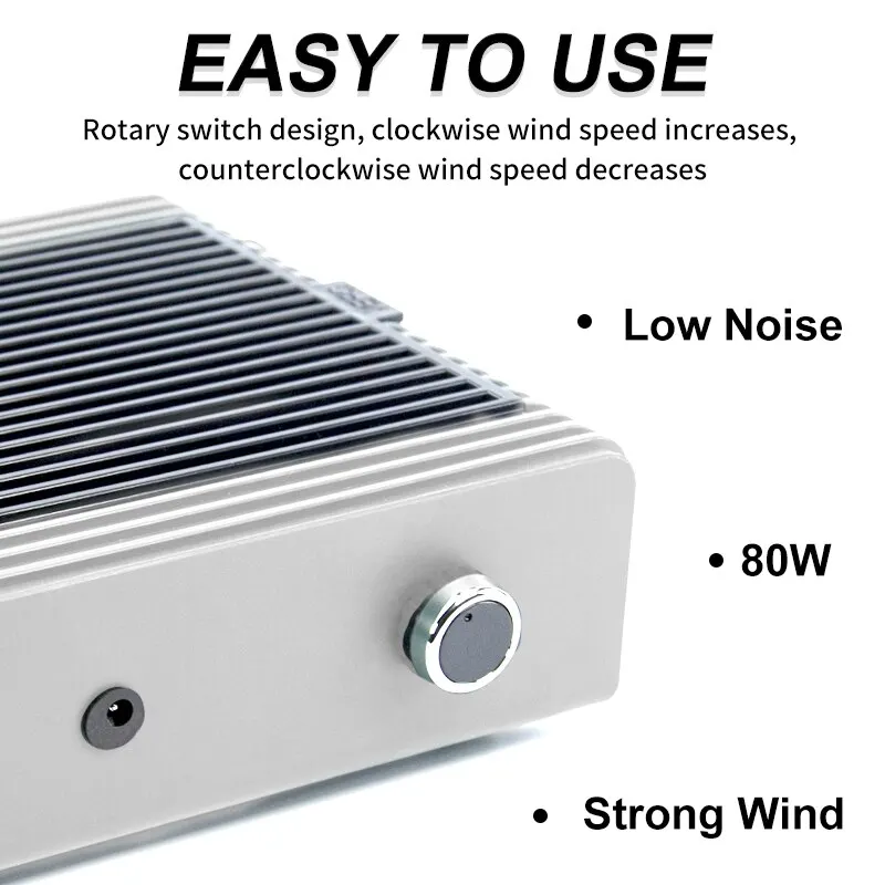 - RÉGLABLE: Avec un simple bouton de commutateur rotatif, la conception de l’interrupteur rotatif, la rotation dans le sens des aiguilles d’une montre peut augmenter la vitesse du vent, la rotation dans le sens inverse des aiguilles d’une montre peut réduire la vitesse du vent.