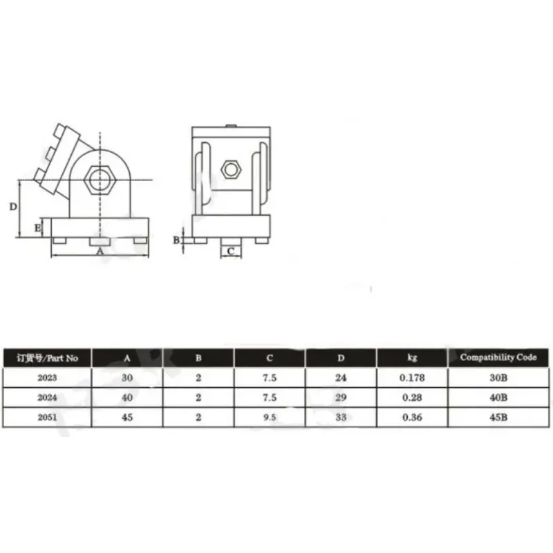 La charnière est utilisée pour la connexion active entre deux sections de profils, sa plage de rotation est de 180°, et il a diverses méthodes de connexion.