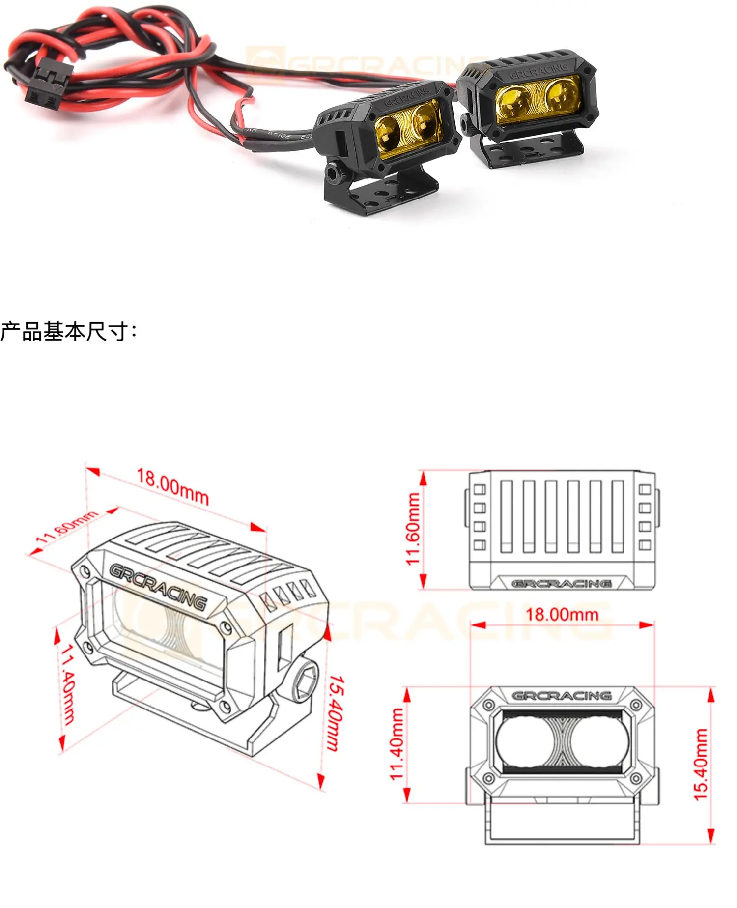 Projecteur à LED de simulation GRC 18mm rectangulaire à double perle adapté aux véhicules tout-terrain 1:10 RC TRX-4 SCX10 pièces modifiées
