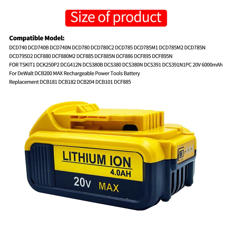 | Li-ion, 4.0Ah, 5.0Ah, 6.0Ah | Pour Dewalt, gamme 20V MAX | Haute qualité |