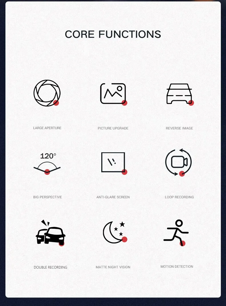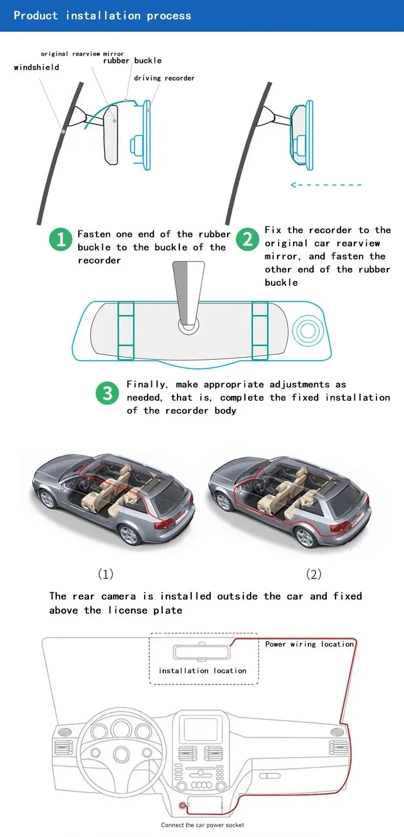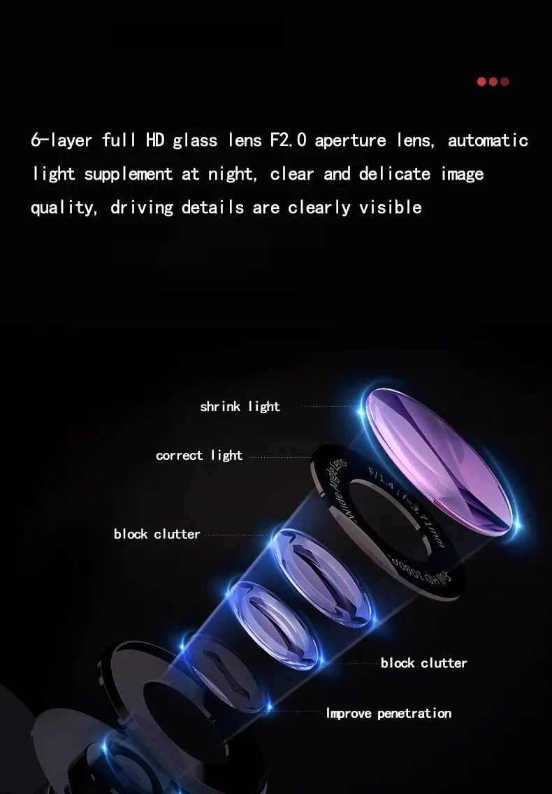| Rétroviseur avant et arrière | Vision nocturne haute définition | Enregistreur de conduite | Lentille touristique | 4 amarans | 1080P |