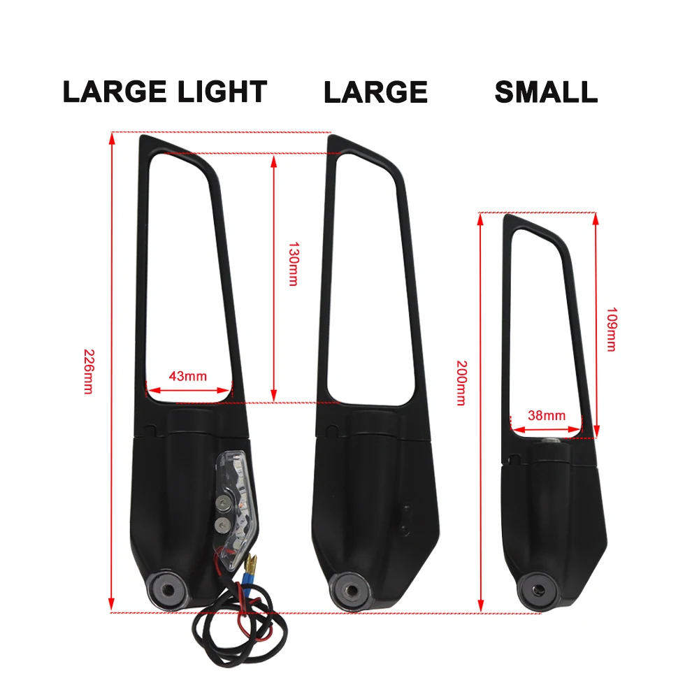 Les Rétroviseurs Latéraux Rotatifs Réglables pour DUCATI Panigale 959 1299 2016-2020 sont spécialement conçus pour correspondre parfaitement à la forme du rétroviseur de la moto. Leur design en forme d’aile avec un angle de 25 degrés par rapport au sol permettra d’améliorer la prise en main et les performances de la moto, notamment à haute vitesse. Ils génèrent une pression de force descendante d’environ 4 kg à 300 km/h.