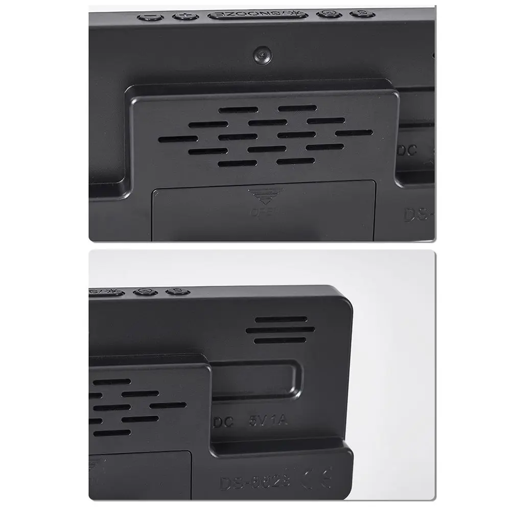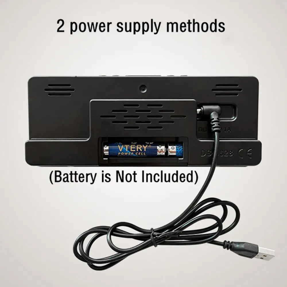 Commande vocale: tapez dans vos mains ou frappez sur la table pour réveiller le réveil. Dans l’heure, appuyez brièvement sur le bouton SNOOZE, La luminosité sera réglée en cycles de 1 à 5 22:00-6:00 La luminosité entre automatiquement en mode faible luminosité Appuyez et maintenez le bouton + pendant 3 secondes pour changer de mode d’affichage. appuyez sur le bouton SNOOZE et maintenez-le enfoncé pendant 3 secondes pour passer en mode Ne pas déranger, éteignez l’affichage, Désactivez le réveil activé par la voix et n’appuyez que manuellement sur le bouton pour réveiller l’écran. Commutation d’affichage 12/24H: appuyez longuement sur la touche S, l’affichage 12/24H peut être commuté par commutation d’affichage +/- Celsius/Fahrenheit: dans l’état de temps, appuyez et maintenez enfoncée la touche pendant 3 secondes pour changer la température Fahrenheit/Fahrenheit couleur du corps: noir forme du corps: mots rectangulaires: blanc/bleu/orange/rouge/vert matériau de l’écran: miroir Taille: Câble USB 17*7*2.5cm Style:3.5×1.35mm(18198) REMARQUE 1: Prenez le flim de protection sur l’écran de l’horloge, il sera plus lumineux. REMARQUE 2: Il s’éteint après 10 secondes lorsqu’il est alimenté uniquement par une pile AAA (non incluse). Si vous souhaitez que l’écran soit toujours allumé, veuillez le brancher. Le paquet comprend: 1 * cordon d’alimentation x1 1 * réveil x1 Remarque: la prise de vue légère et les différents affichages peuvent rendre la couleur de l’article dans l’image un peu différente de la vraie chose. L’erreur de mesure autorisée est de +/- 1-3cm.