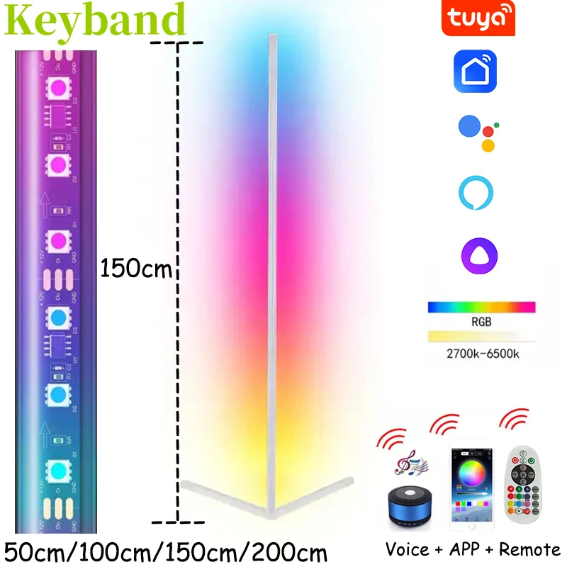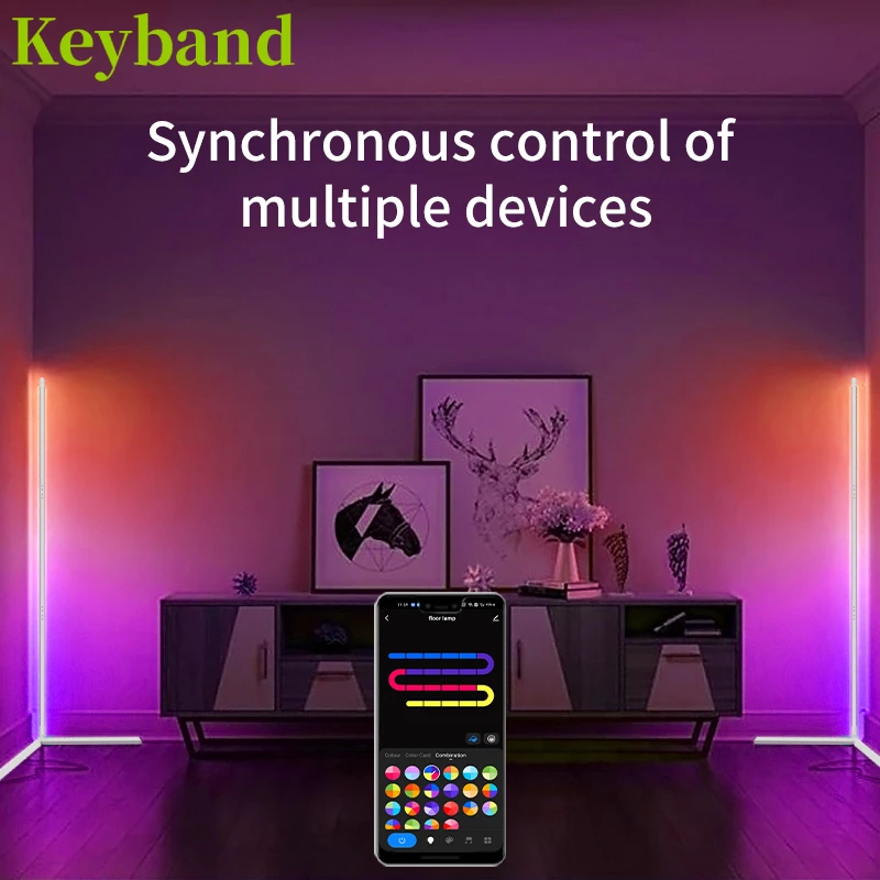 Lampadaire d’angle LED intelligent RVB à changement de couleur