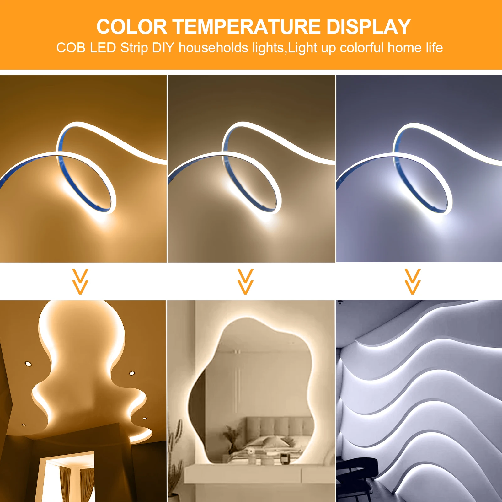 - Cette bande LED FCOB peut être coupée à chaque point de cisaillement pour créer des longueurs personnalisées, ne pas plier la bande LED brusquement.
