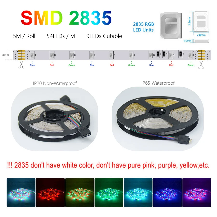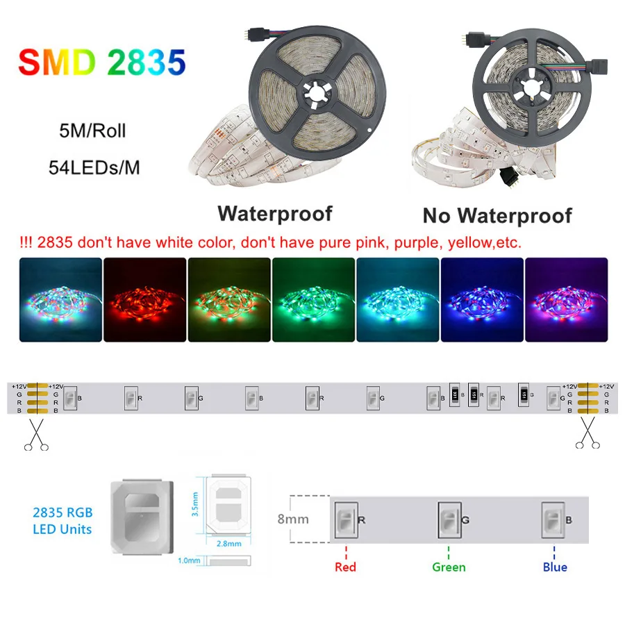 | Spécification | Type: 2835 lumières RVB LED flexibles |