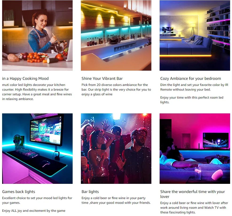 Bande super longue de 5 mètres (16,4 pieds) à 30 mètres (98,4 pieds): assez longue pour décorer toute votre pièce. Parfait pour les salons, les chambres, les salles à manger, les cuisines, les bureaux, les armoires et votre sapin de Noël. Particulièrement adapté pour les fêtes comme Noël, Halloween, et plus encore.