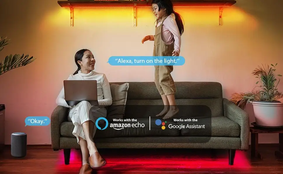 | Bande lumineuse LED RGB 5050 | Tuya, Alexa, Google Assistant, Bluetooth | 20-5m | Chambre |