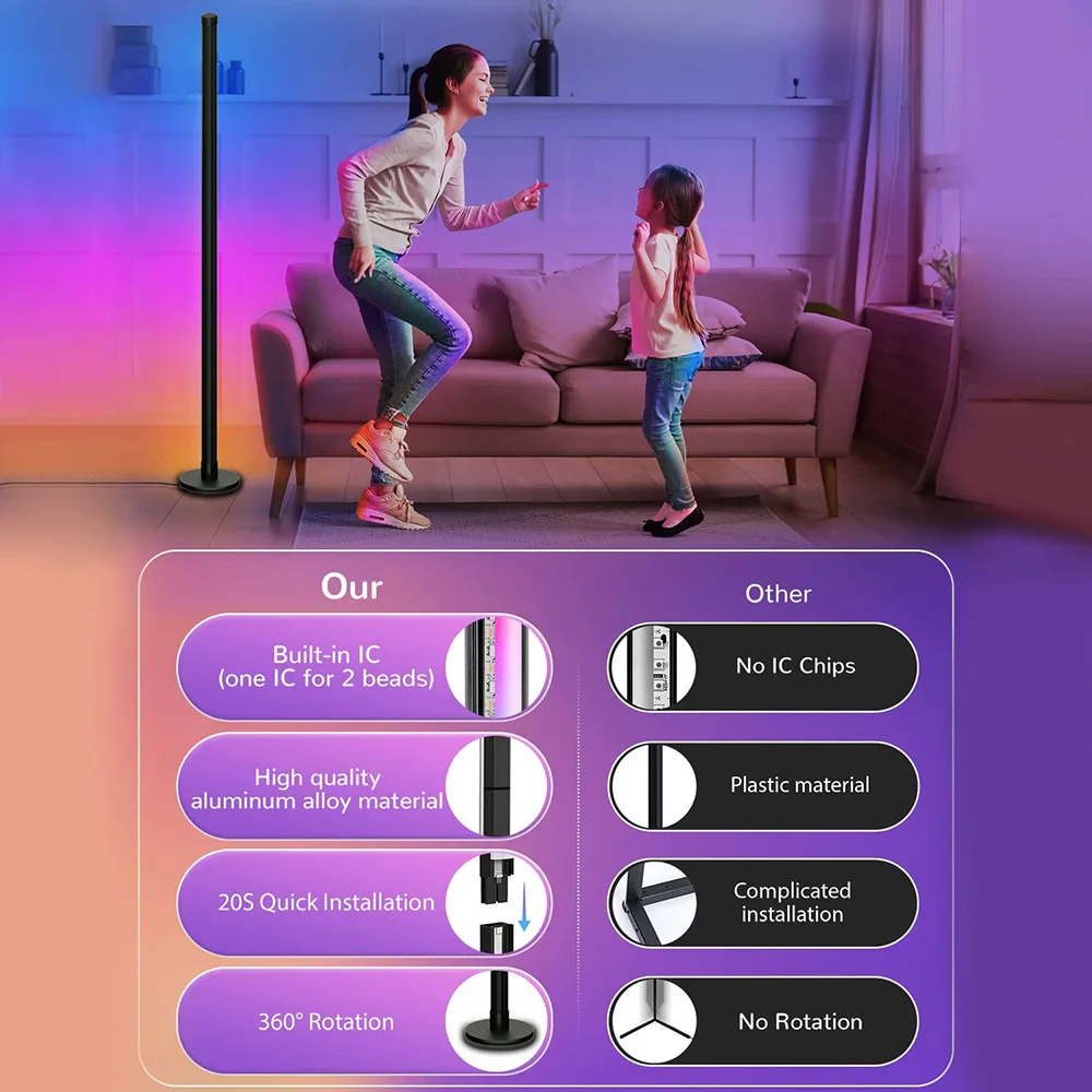 - Le lampadaire fantaisie RVB a 16 millions de couleurs de bricolage pour répondre à vos besoins personnalisés.