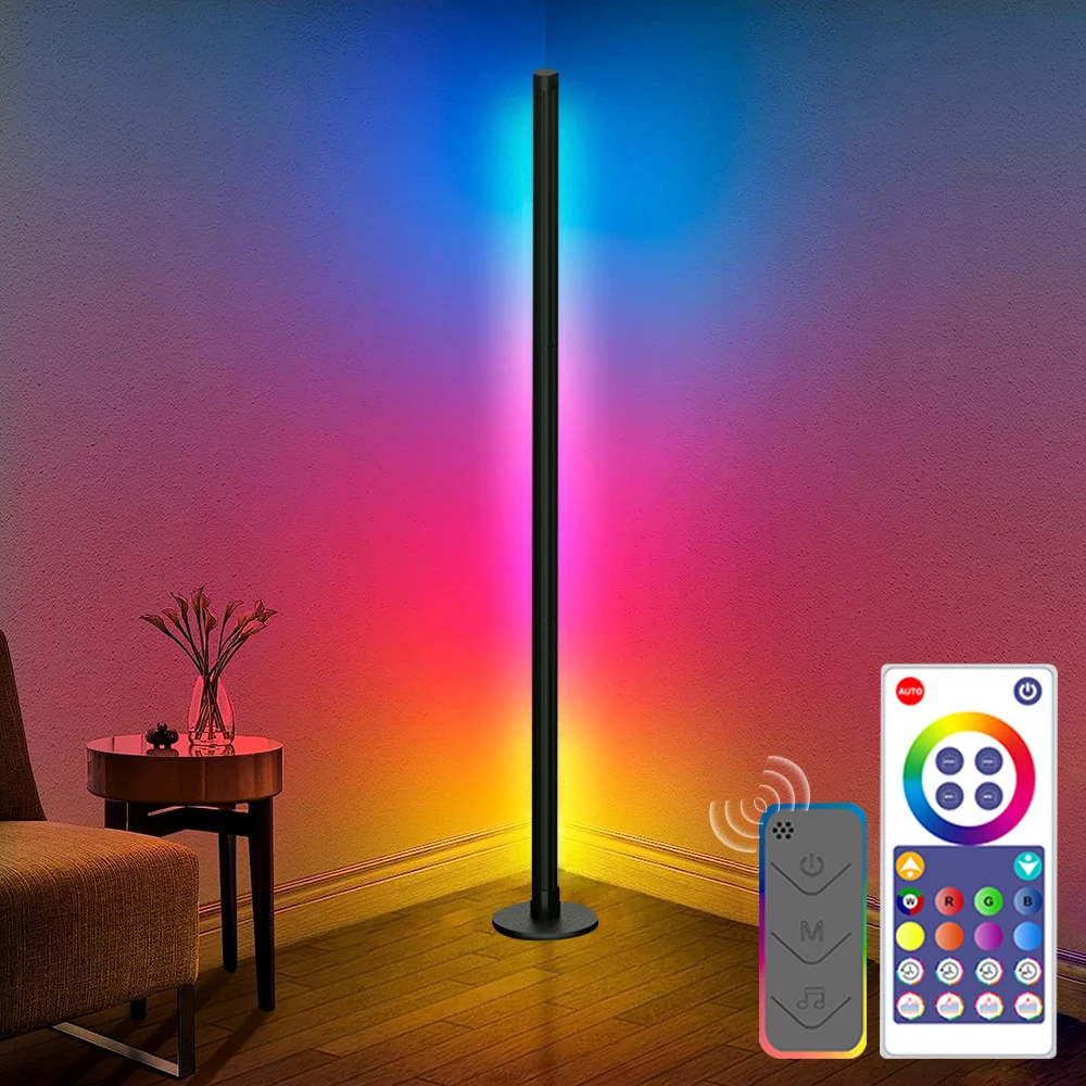 | Lampadaire de couleur de salon lampadaire d’angle à intensité variable avec synchronisation musicale éclairage moderne de lampe de table de lumière d’ambiance changeante de couleur |