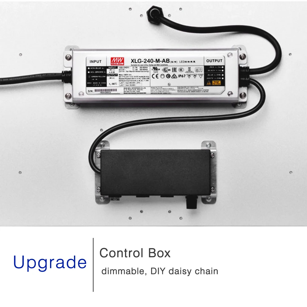 La fonction Daisy chain permet de connecter plusieurs lampes ensemble pour une solution d’éclairage extensible. Les LED Samsung LM301H Quantum offrent une performance énergétique supérieure et une longue durée de vie. Le driver Meanwell assure une alimentation stable et fiable, garantissant un fonctionnement sans problème de la lampe.