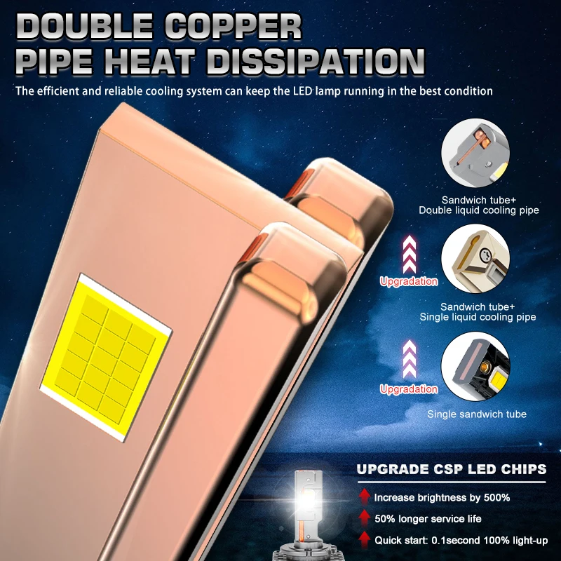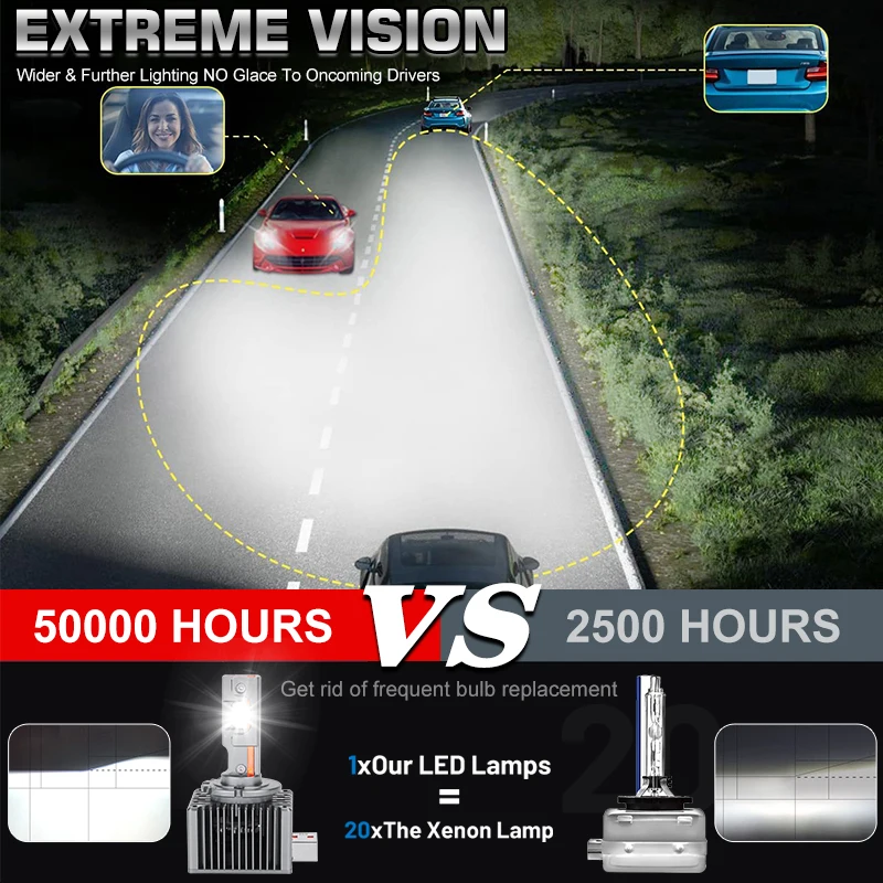 | Phares LED D3S HID D1S D2S D4S D5S D8S D1R D2R D3R Ampoule LED Turbo 80000LM Puce CSP recto-verso 6000K 160W Plug & Play |