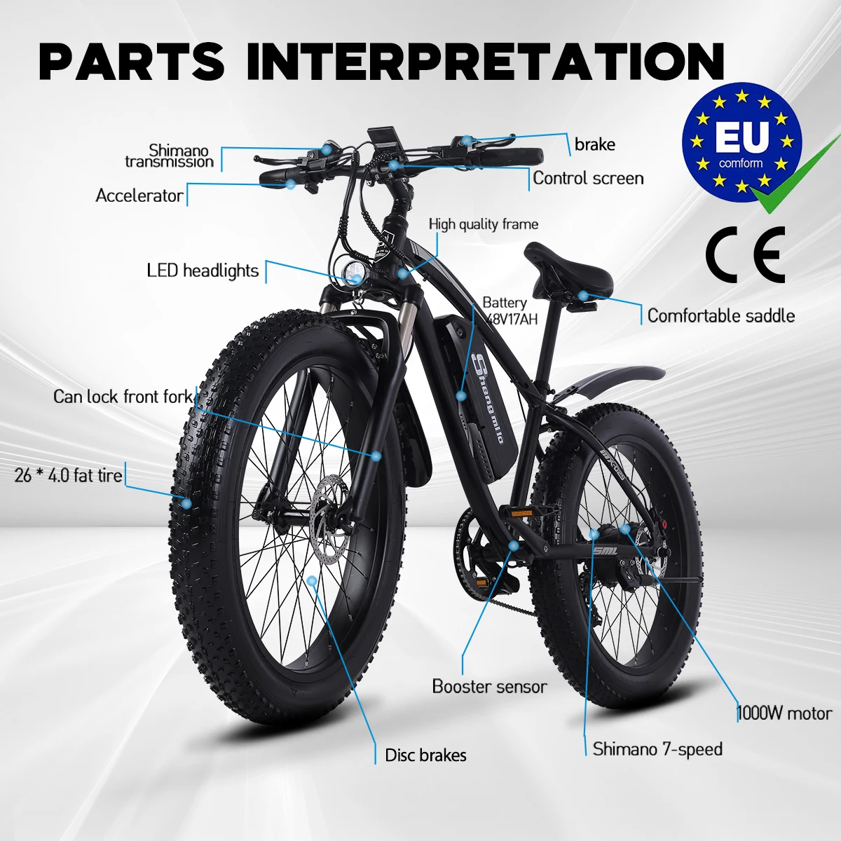 - Gros pneus de 26*4.0 pouces adaptés à différents terrains