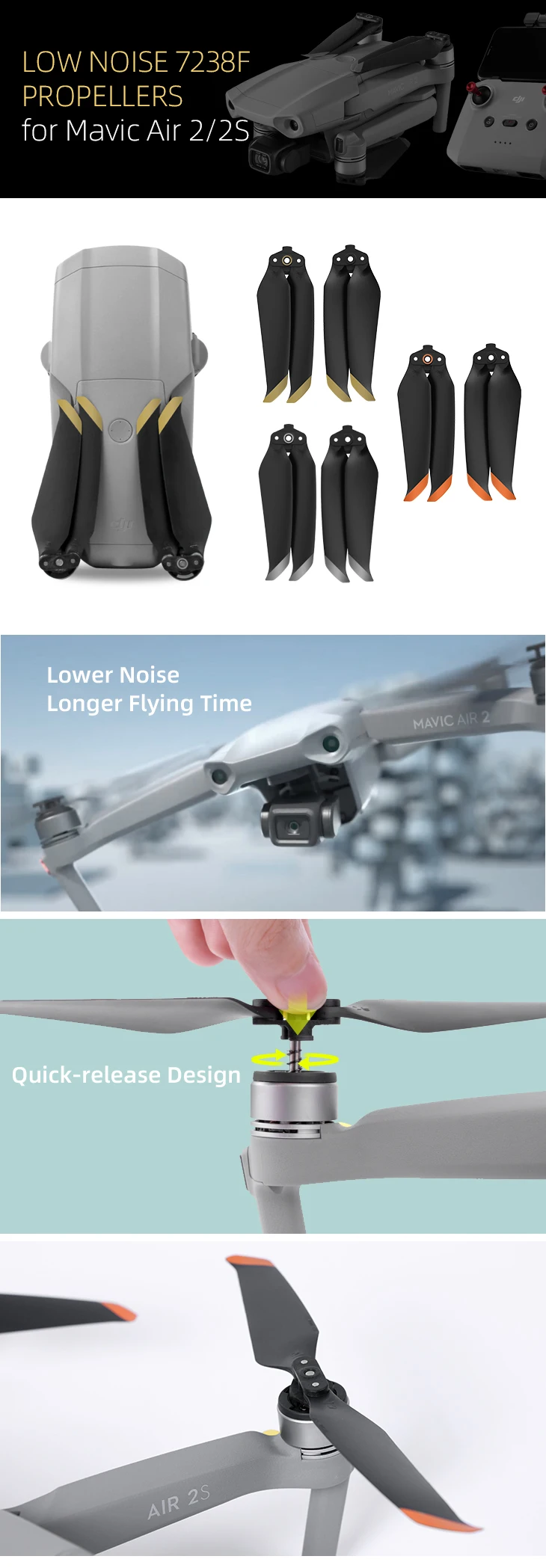 Accessoires d’hélice 7238 à faible bruit à dégagement rapide 7238F hlices de lame de Drone pour accessoires DJI Air 2s/Mavic Air 2