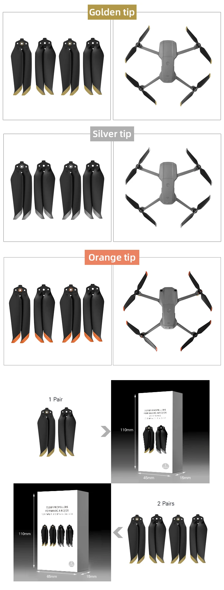 - Hélices à faible bruit 7238F pour Mavic Air 2/DJI Air 2s