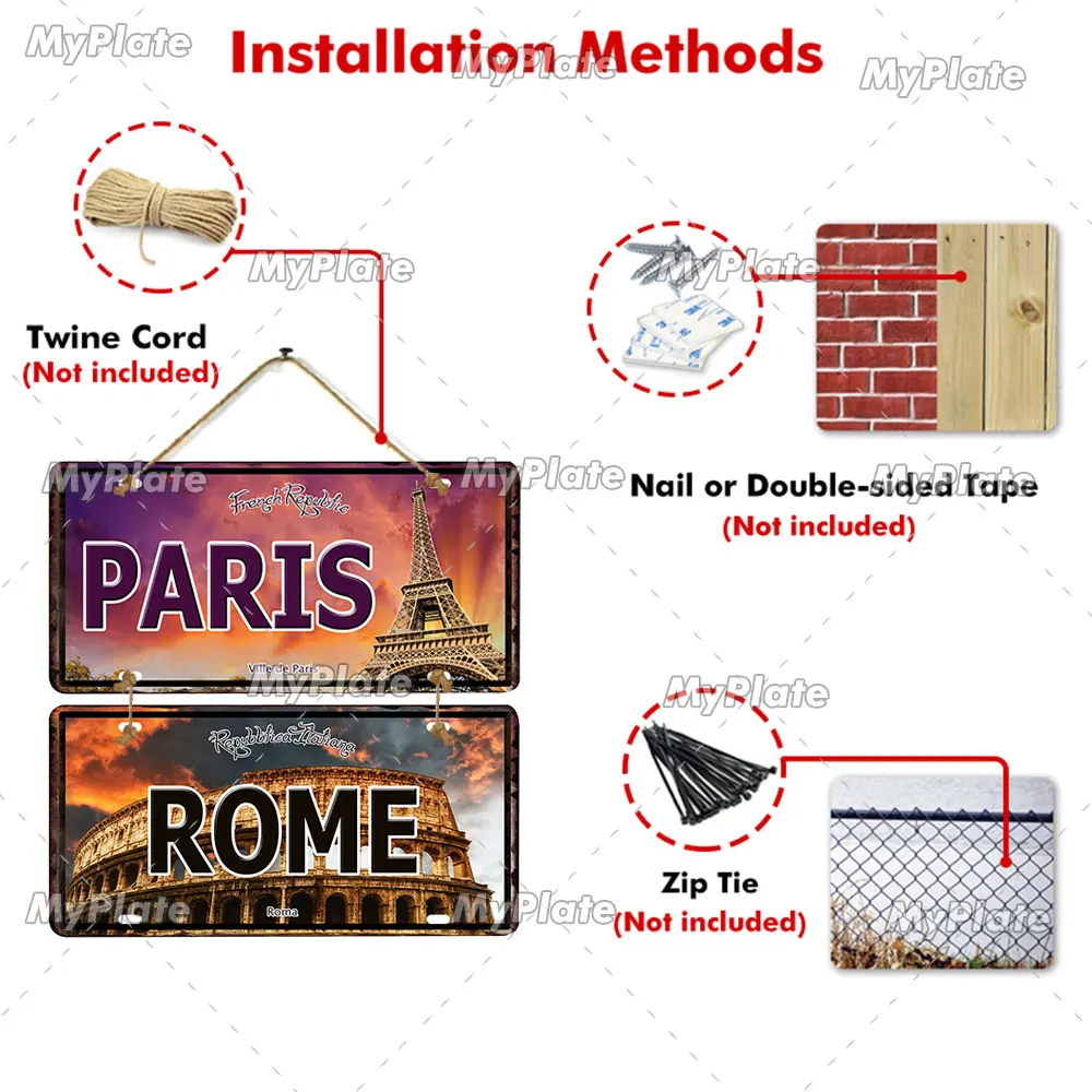 La plaque de décoration MyPlate est un accessoire idéal pour décorer votre maison, votre magasin, votre bar ou votre pub. Avec 18 panneaux qui forment la silhouette de différents pays, cette plaque en métal apportera une touche artistique à votre espace. Son design unique en fait une affiche parfaite pour votre mur.