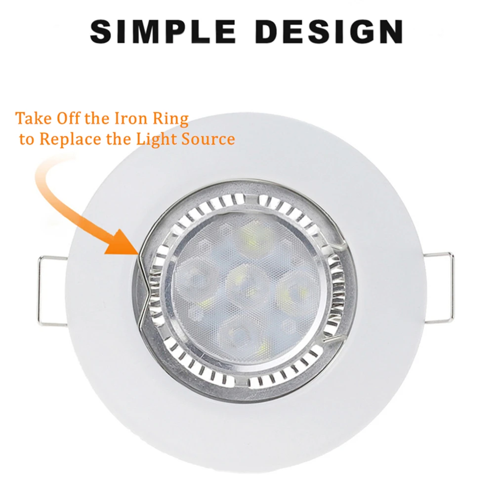 Le Spot Lumineux LED Encastrable pour le Plafond est conçu pour être utilisé avec des ampoules de projecteur de Dia.50mm MR16/GU10 LED/ampoule d’halogène. Il peut être installé en découpant un trou dans le plafond et les ailes robustes à ressort le maintiennent en place. Les pinces en forme de souricière du spot permettent l’auto-ajustement à différentes épaisseurs de paroi. La méthode d’installation recommandée est l’encastrement. Le matériau utilisé pour ce spot est un matériau en métal de fer de haute qualité. Ce spot lumineux LED encastrable peut être utilisé dans différents endroits tels que les supermarchés, les expositions, les vitrines, les galeries d’art et les musées.