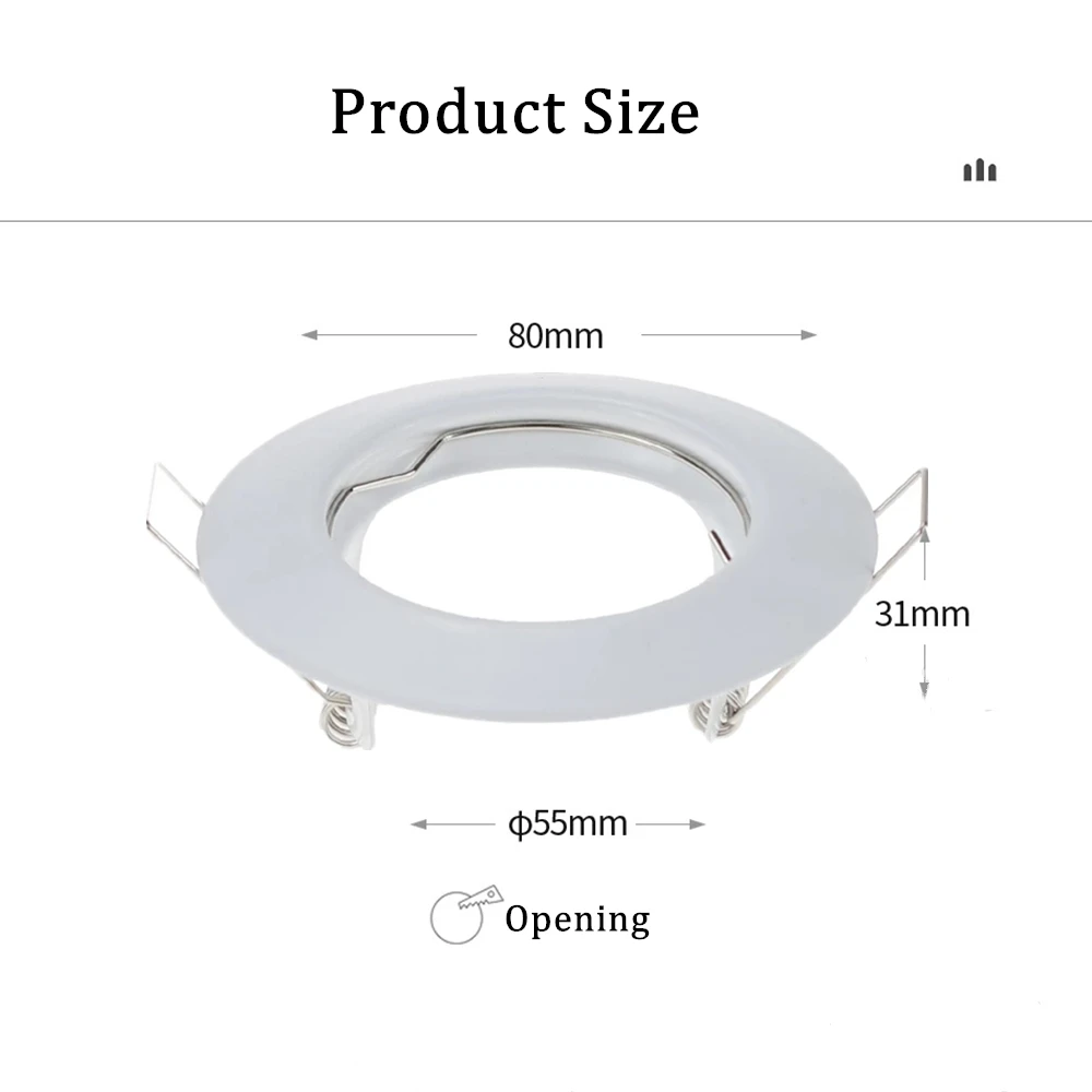 Le Spot Lumineux LED Encastrable pour le Plafond est un petit luminaire de plafond LED ou halogène MR16 GU10. Il a un diamètre extérieur de 80mm, une hauteur de 31mm et une découpe de 55mm. Le matériau utilisé est du métal de haute qualité. Ce spot encastrable convient aux ampoules de projecteur de Dia.50mm MR16/GU10 LED/ampoule d’halogène.