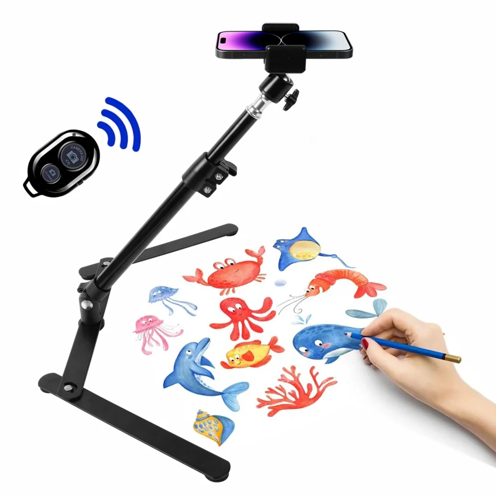 Le trépied aérien pliable de bureau pour smartphone est un bras de support rapide avec un support de téléphone, idéal pour la prise de vue photo et vidéo en direct. Il est en alliage d’aluminium, ce qui le rend solide et durable. Sa hauteur est réglable entre environ 29 à 46 cm, et il est équipé d’un clip de téléphone ajustable de 5.8 à 8.5 cm. Ce trépied offre plusieurs caractéristiques intéressantes :
