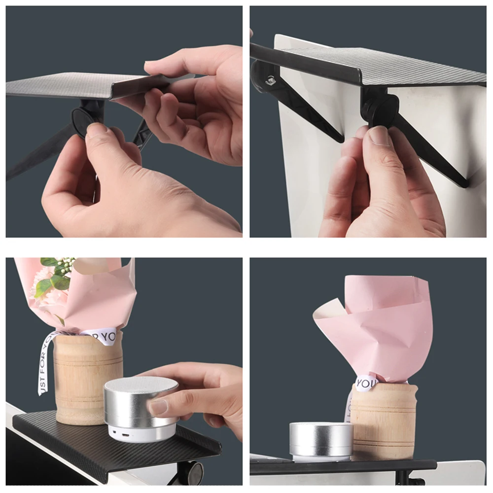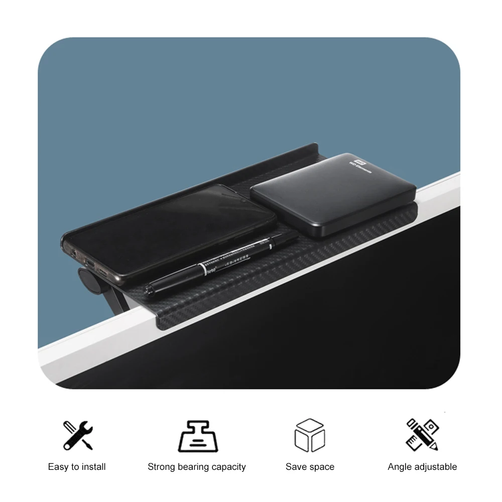 Ce support est extrêmement pratique pour organiser et ranger tous les appareils électroniques et accessoires de bureau. Il est facile à installer grâce à sa conception sans trous et son angle réglable offre une grande flexibilité pour ajuster la position de l’étagère. De plus, sa capacité à pivoter à 180° permet de changer facilement l’angle de vue de l’écran.