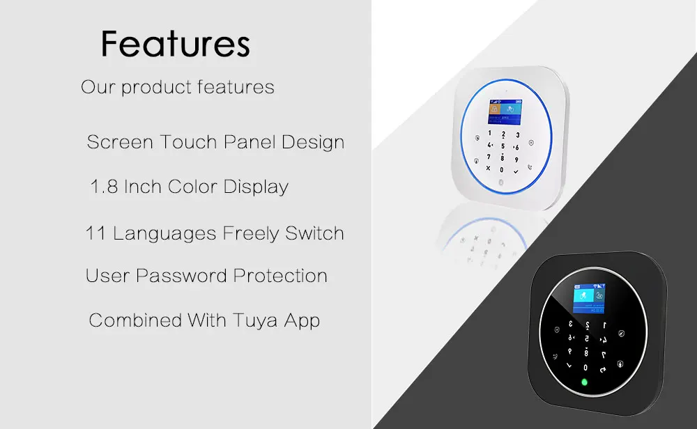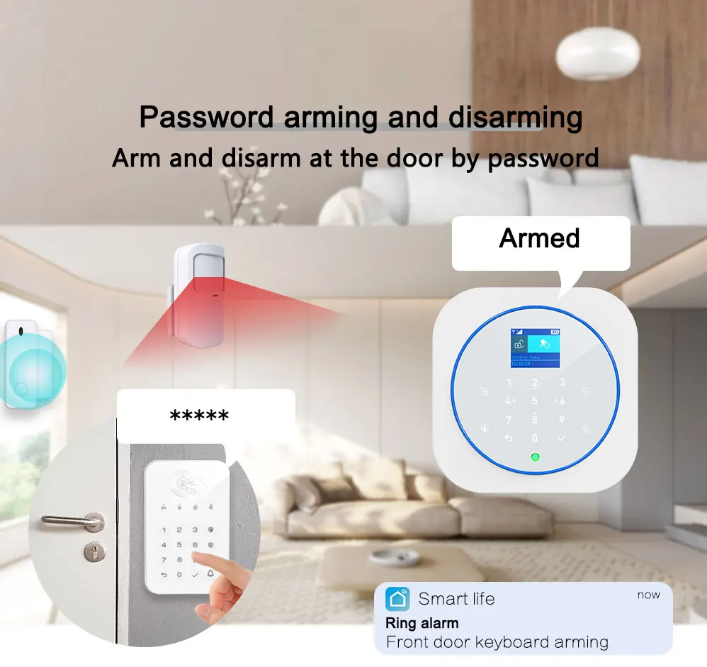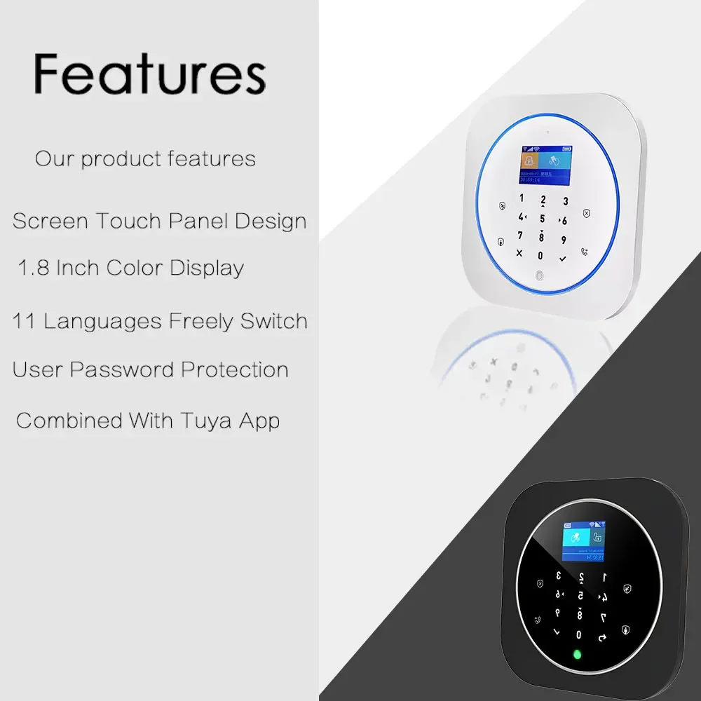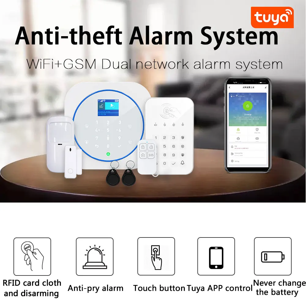| Système d’alarme Zonan Tuya Wifi clavier tactile sans fil GSM RFID carte clavier App contrôle cambrioleur alarme incendie Kits de maison intelligente | – Facilité d’utilisation grâce au clavier tactile – Contrôle par application Tuya – Utilisation sans fil avec connexion Wi-Fi – Utilisation de carte RFID pour l’armement et le désarmement – Protection contre les cambriolages | – Nécessité d’une connexion Wi-Fi stable – Risque de fausse alarme en cas de problèmes de connexion |