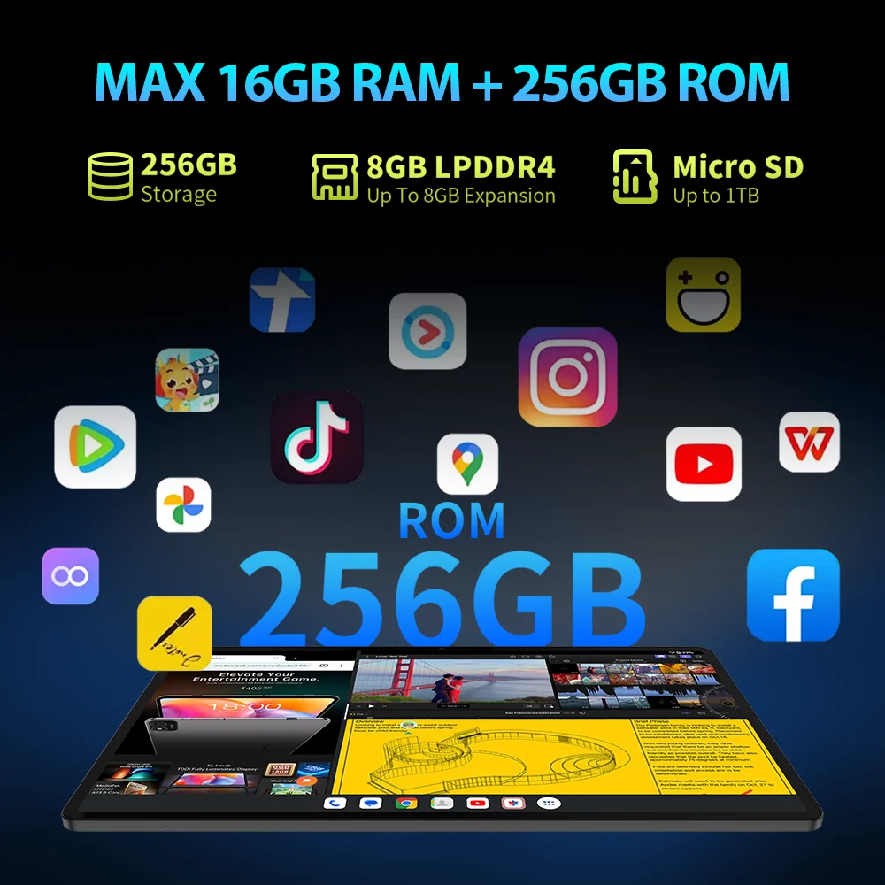 Équipée du processeur UNISOC T616 Octa Core, cette tablette offre des performances rapides et fluides pour une expérience utilisateur optimale.