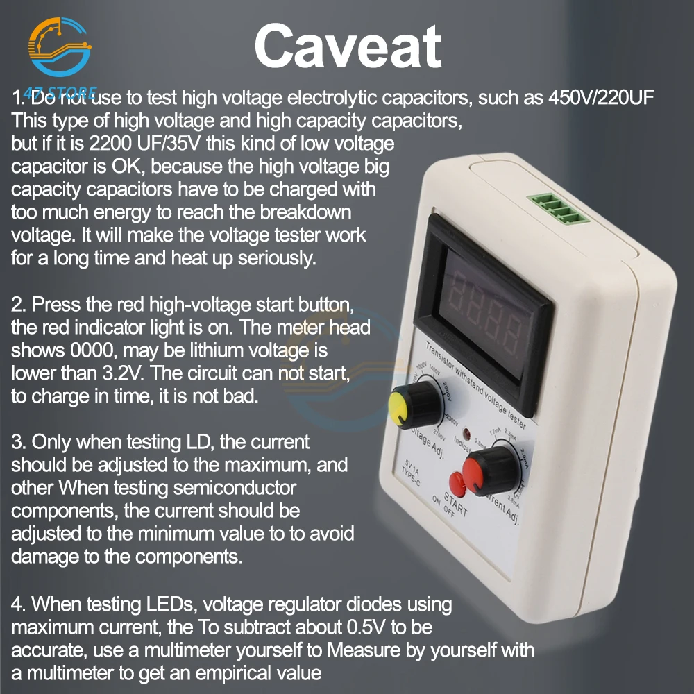 - Outil peut être utilisé dans MOS, triode, IGBT, diode, diode Zener, test de capacité de tension maximale du pont de diodes, etc.