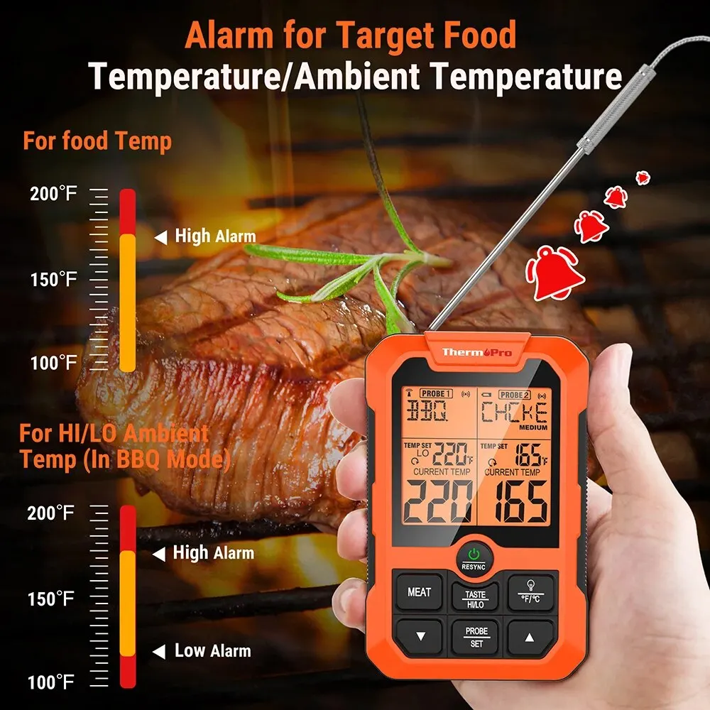 | Portée de télécommande sans fil de 150 mètres | – Avec le récepteur TP810W, vous pouvez surveiller la température à moins de 300 mètres. Lors de la cuisson, vous pouvez faire d’autres choses en même temps, ce qui permet de gagner du temps. |