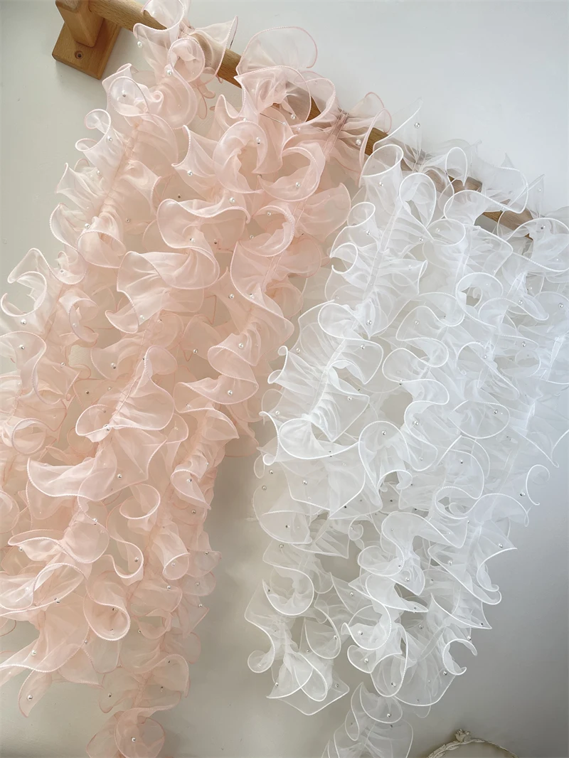 Le Tissu Organza en Dentelle Perlée Plissée à la Main est un excellent choix pour vos projets de décoration. Sa largeur de 11cm/4.33 » lui permet d’être utilisé de différentes manières. Sa couleur belle peau blanche et rose clair lui confère une esthétique agréable. De plus, il est expédié rapidement, ce qui en fait un choix pratique pour tous vos besoins de décoration.