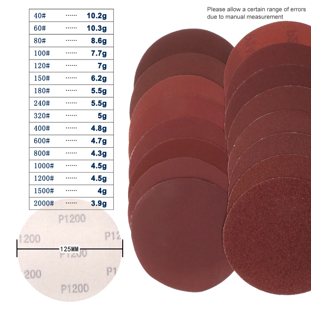 Les disques de ponçage à crochet et boucle de 1/2/3/4/5 pouces sont composés de 20 pièces de papier de verre en oxyde d’aluminium de grain 40-2000. Ils sont spécialement conçus pour la perceuse abrasive et les outils rotatifs.