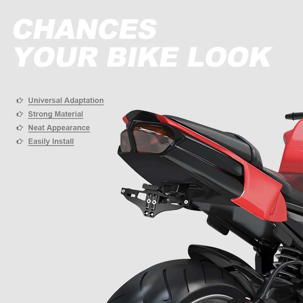 L’éliminateur de garde-boue de moto est réglable, ce qui vous permet d’ajuster l’angle horizontal pour obtenir la meilleure vue de la route légale. Il dispose également d’une fonction de réglage de la longueur, qui vous aide à éviter de rayer l’échappement ou le siège arrière.