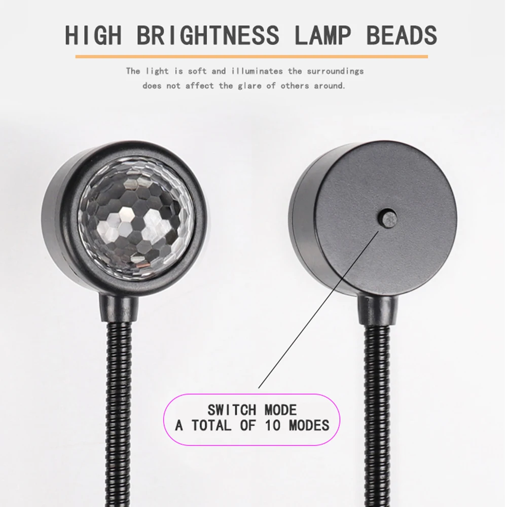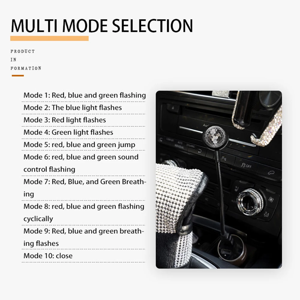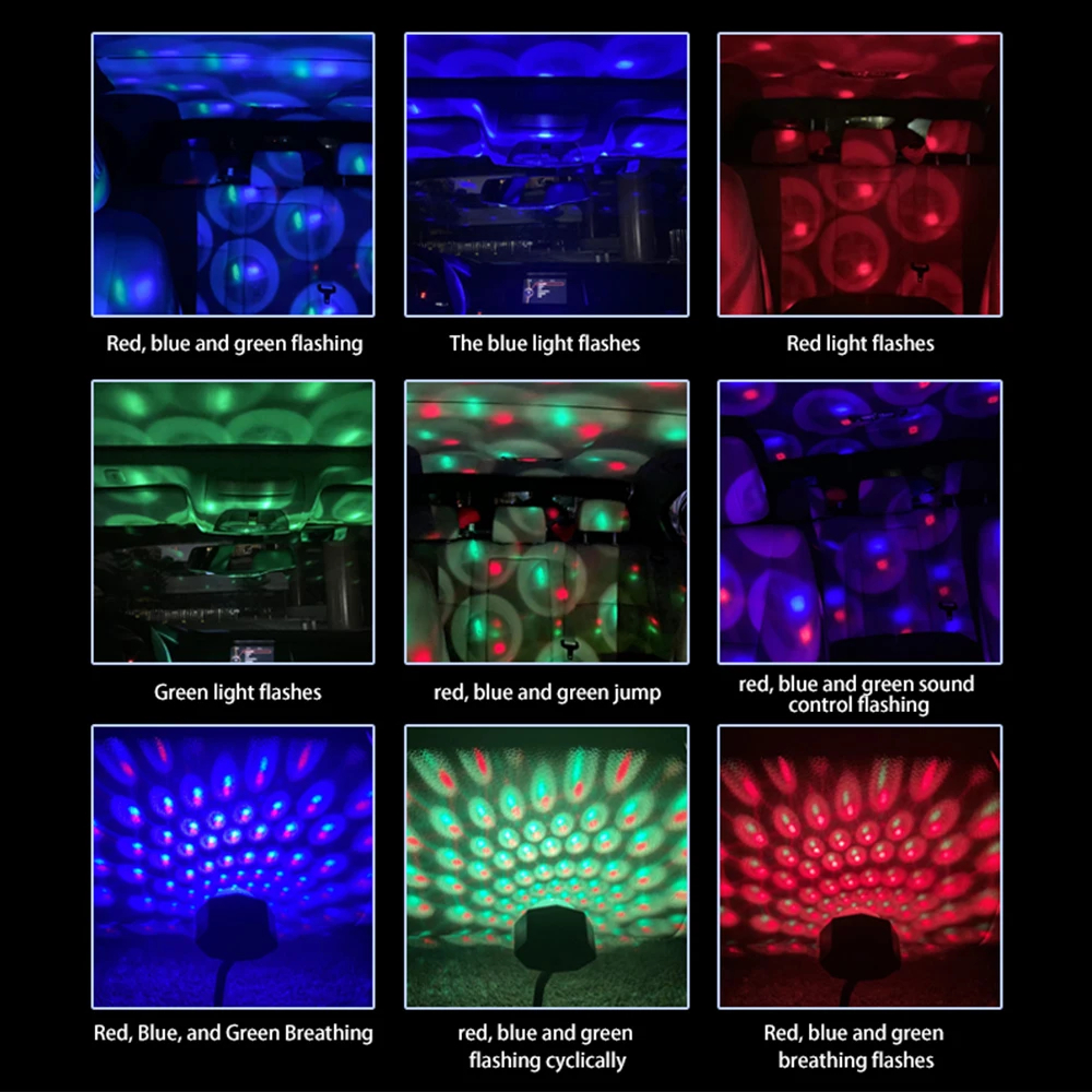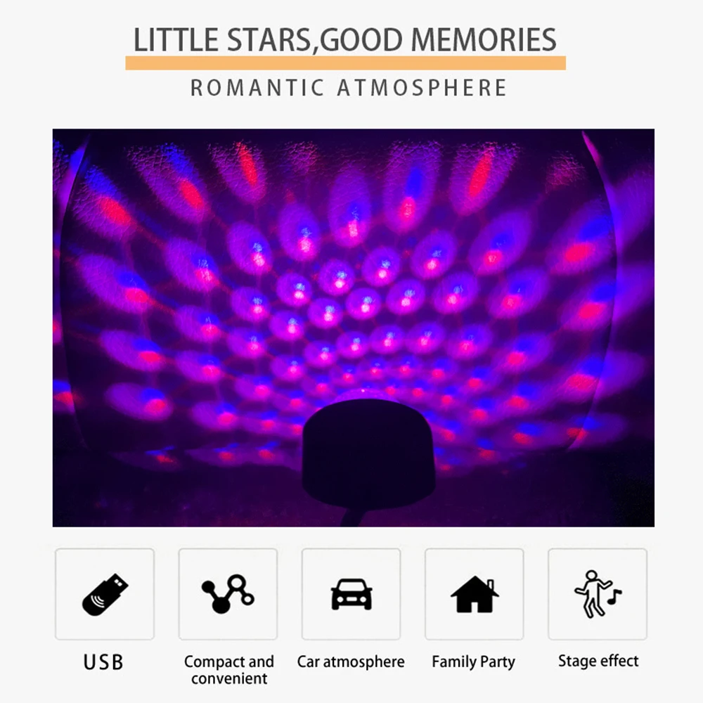 Microphone haute sensibilité intégré (commande vocale), perles de lampe colorées RVB, lumières multicolores, lentille galénique en cristal, apparence compacte et portable, 9 modes réglables.
