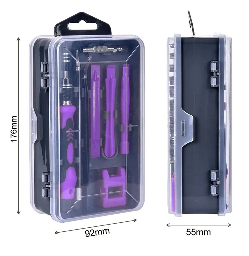 Après avoir testé le jeu de tournevis de précision multifonction violet, je dois dire que je suis très satisfait de ses performances. Les embouts de tournevis sont de haute qualité et magnétiques, ce qui les rend faciles à utiliser. La poignée ergonomique offre une excellente prise en main et la variété d’embouts inclus permet de faire face à toutes sortes de réparations. De plus, l’étui de rangement en plastique est très pratique pour garder tous les outils organisés. Je recommande vivement ce jeu de tournevis à tous ceux qui ont besoin d’un outil de réparation professionnel et pratique.