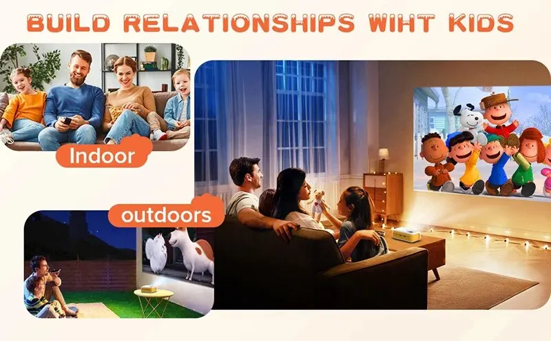 Peut afficher des vidéos et des photos n’importe où n’importe quand. Permet de partager le temps spécial en famille via le projecteur A10.
