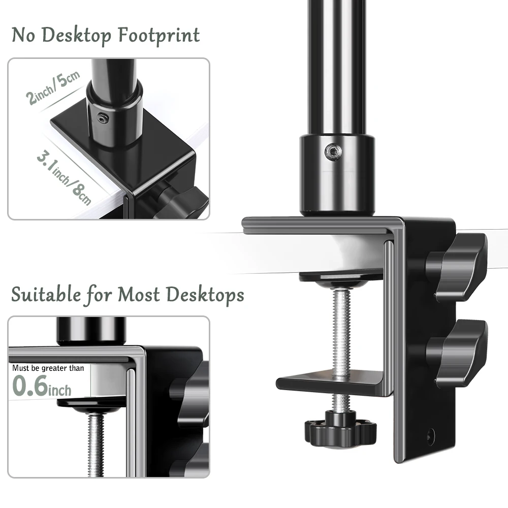 Réponse 2: Oui, ce support de montage peut être fixé sur un bureau avec une distance de réglage de 1.5cm à 10cm.