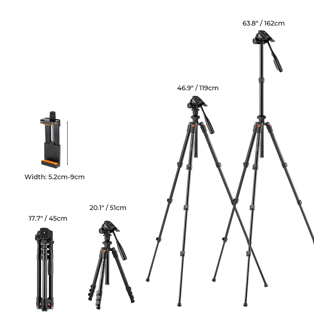 | K&F Concept 64 inch/162cm Video Tripod,Lightweight Travel Tripod |