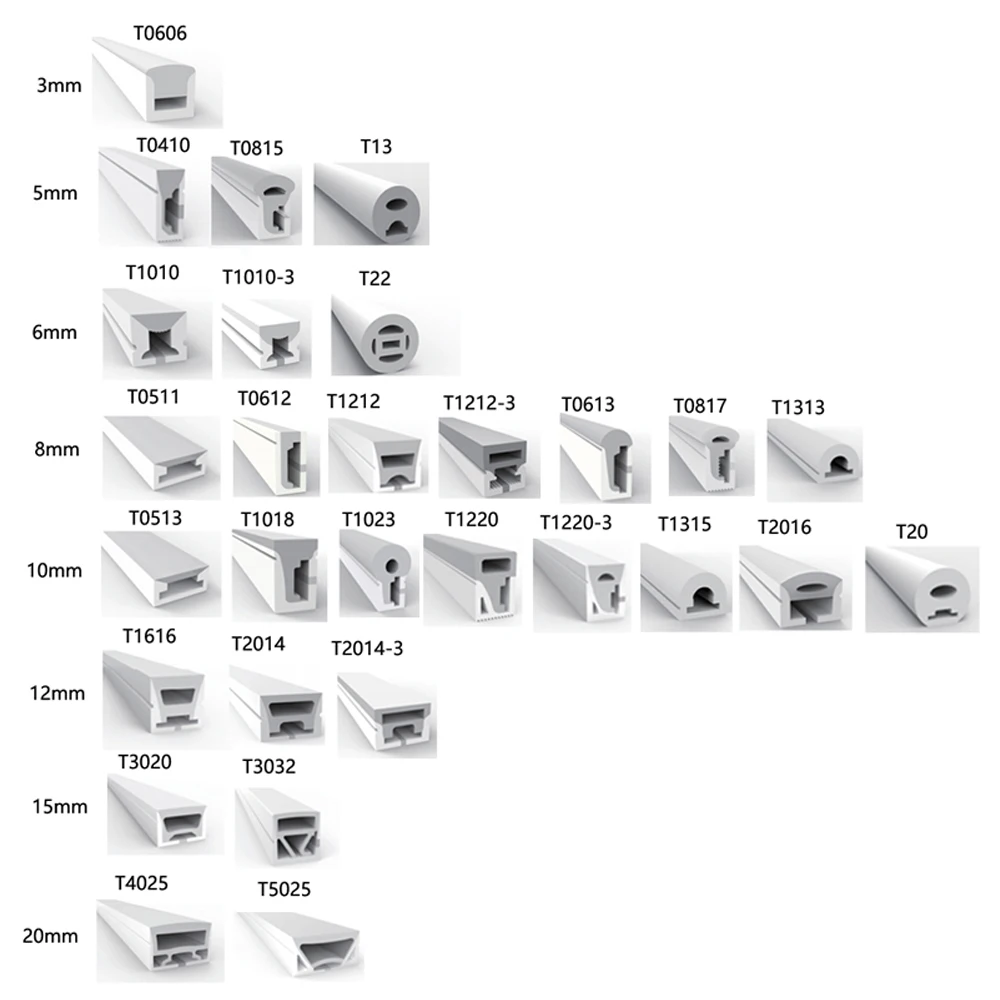 Le tube néon est livré avec un tube de 1x1m-5m selon votre choix. Il comprend également 2 capuchons d’extrémité et 3 clips fixes pour chaque mètre de tube (les modèles T0515/T0606 n’ont pas de clips fixes). Veuillez noter que les bandes LED ne sont pas incluses dans le forfait.