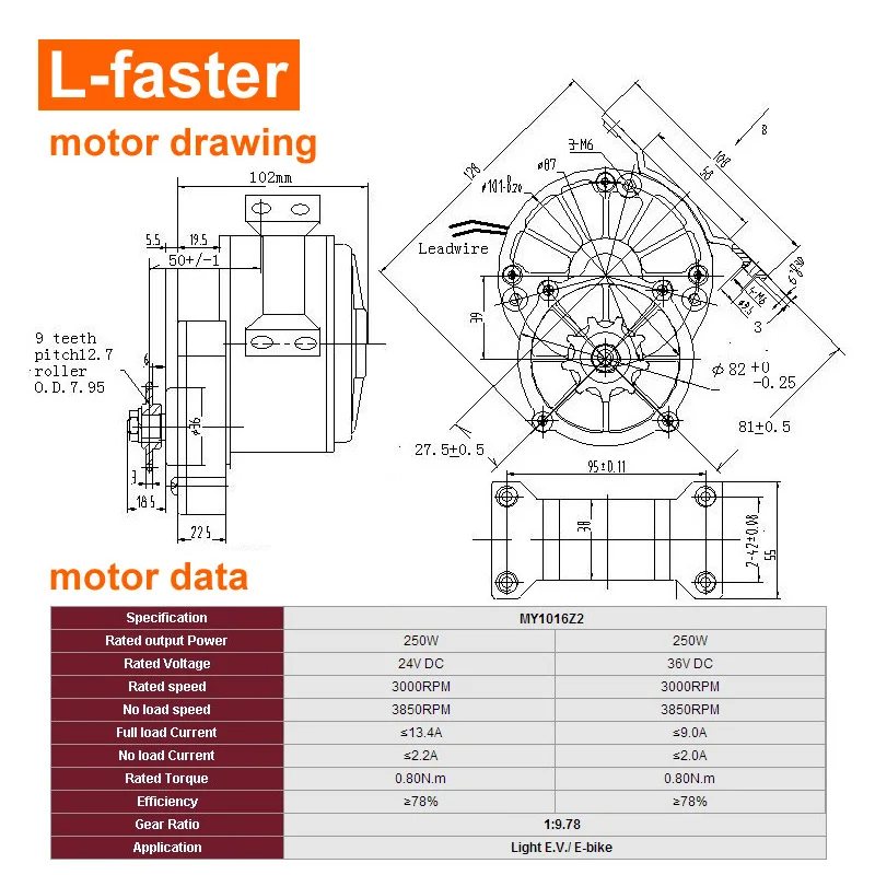 L’Unitemotor-Moteur à balais électrique pour chariot électrique, boîte de vitesses pour touristes, fauteuil roulant et vélo, MY1016Z2, est composé de deux moteurs à courant continu de 250W chacun. La puissance totale de ce kit est de 500W. Ce moteur est un motoréducteur avec un réducteur, ce qui lui donne une vitesse de sortie lente mais un grand couple. Il est donc adapté pour une utilisation sur un fauteuil roulant ou un chariot. Si vous avez des doutes sur le moteur à utiliser, n’hésitez pas à nous contacter.