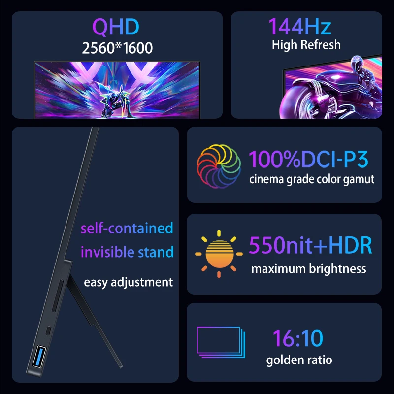 Moniteur portable VCHANCE 16 »2.5K 144Hz 550nit 100% DCI-P3 écran de jeu FreeSync HDR pour ordinateur portable Macbook Xbox PS4 PS5 Switch