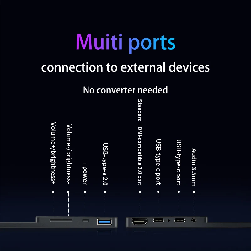 - Écran tactile et compatible avec différents appareils tels que les ordinateurs portables, les PC, les consoles de jeux, les smartphones