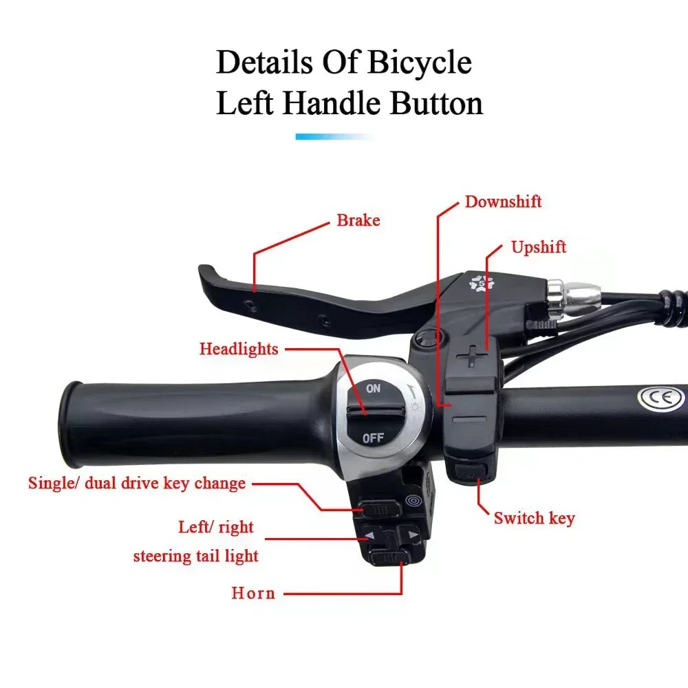 Le vélo électrique de montagne de 20 pouces avec batterie au lithium de 48V et 17Ah est un modèle puissant adapté aux amateurs de VTT. Le cadre est en alliage d’aluminium, offrant à la fois légèreté et résistance. Le vélo est livré avec une batterie de 17AH et une tension de 48V, ce qui permet une autonomie suffisante pour une utilisation prolongée. Le moteur de 2000W offre une puissance élevée, facilitant les montées et les trajets difficiles.