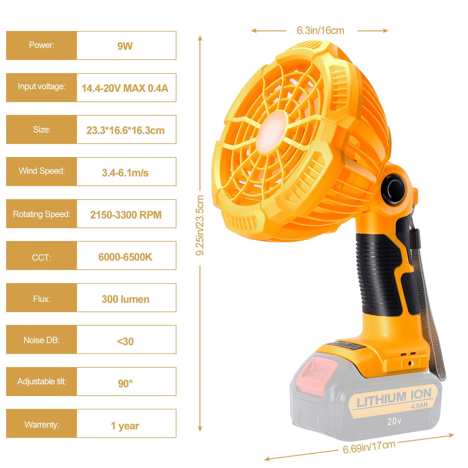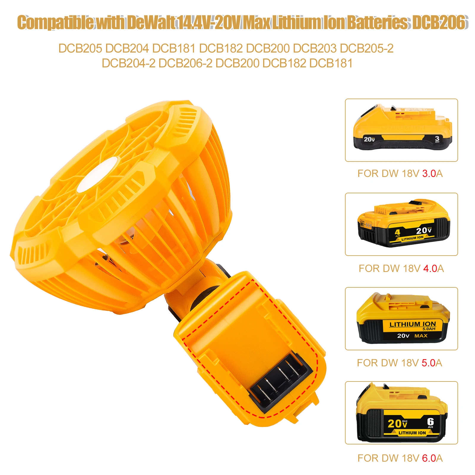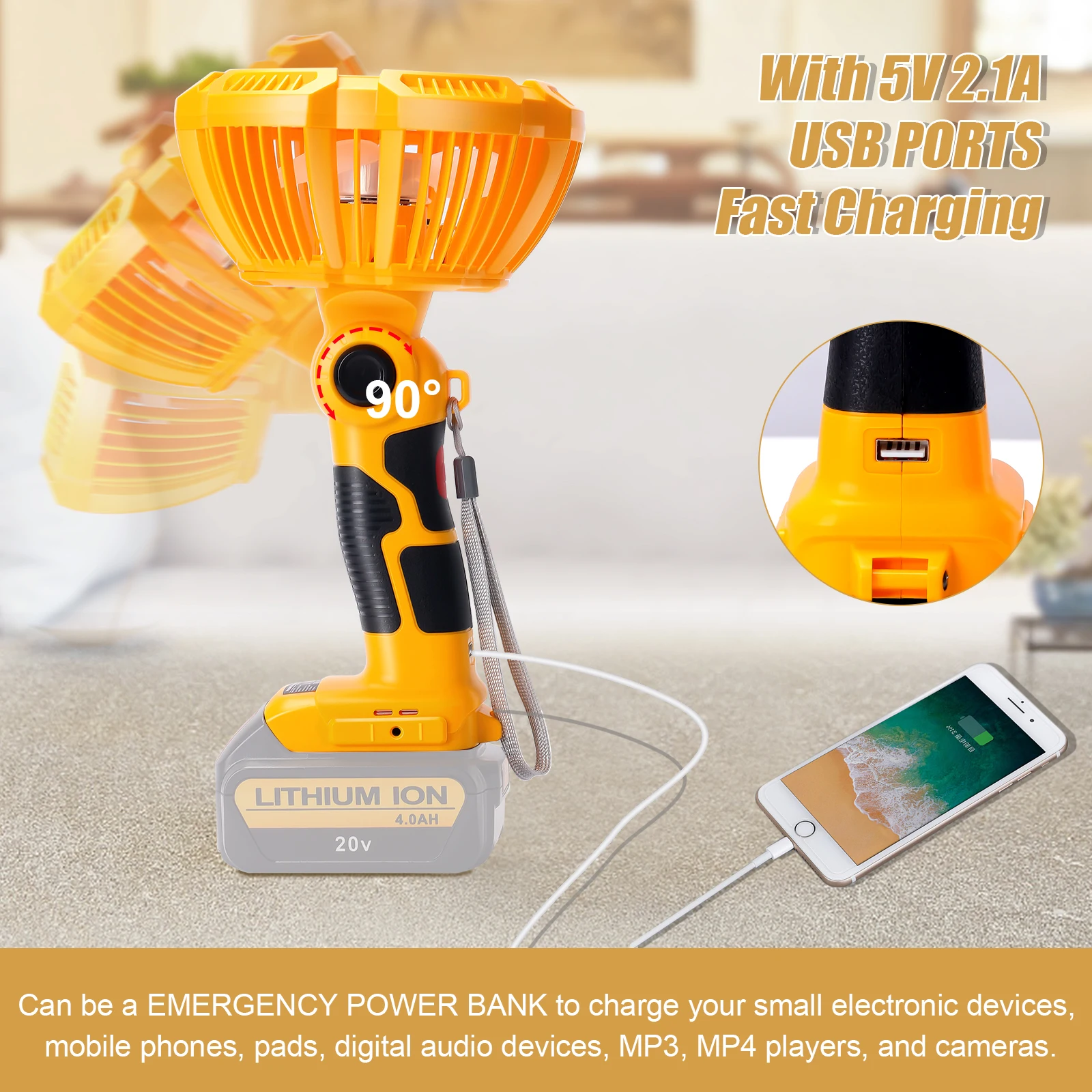 Voici les points importants à retenir du Ventilateur de camping portable sans fil avec batterie externe adaptée à Dewalt :
