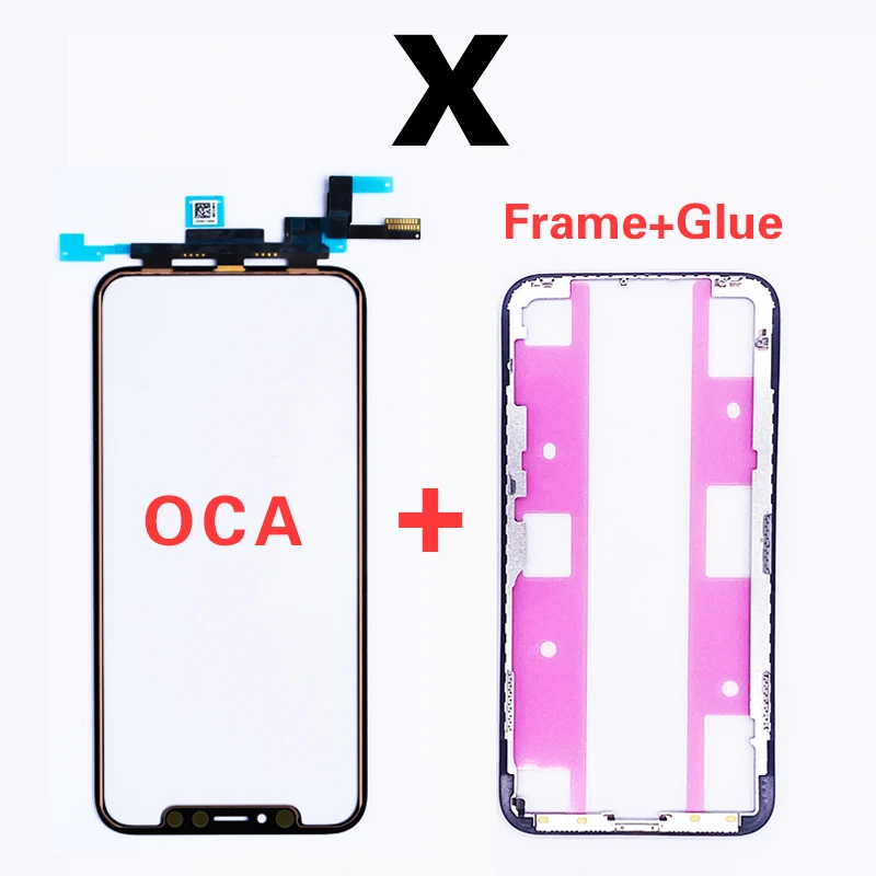 - Verre à capteur tactile d’origine avec cadre IC, colle OCA, gaze anti-poussière