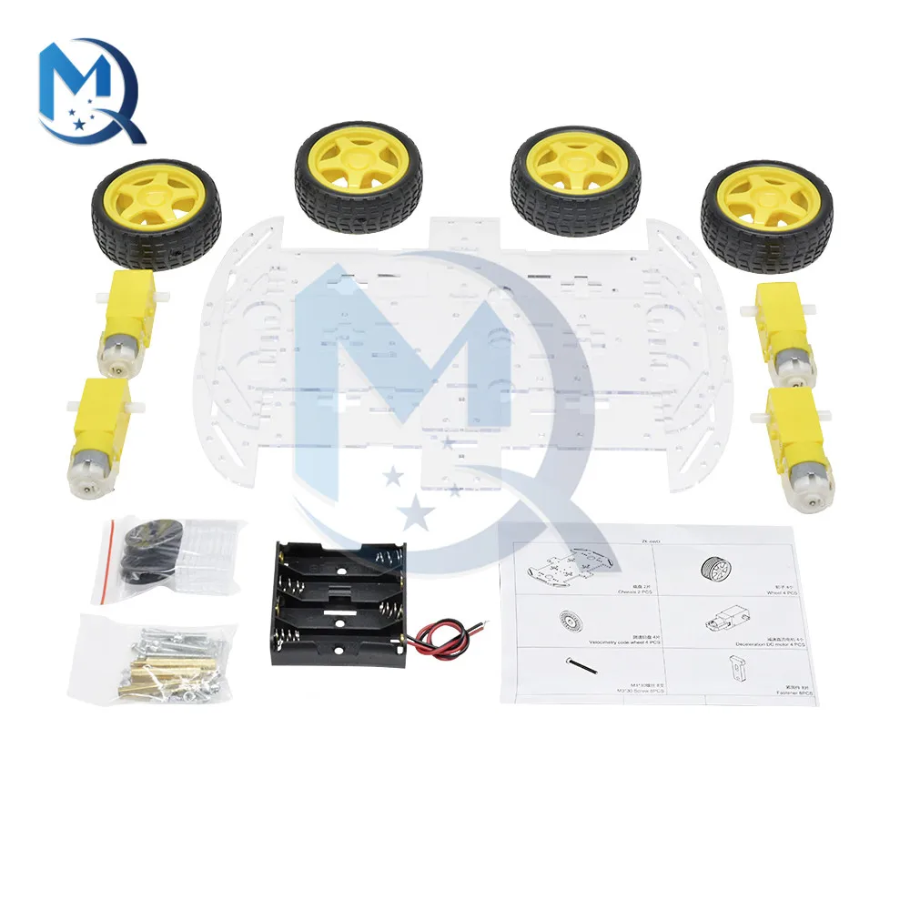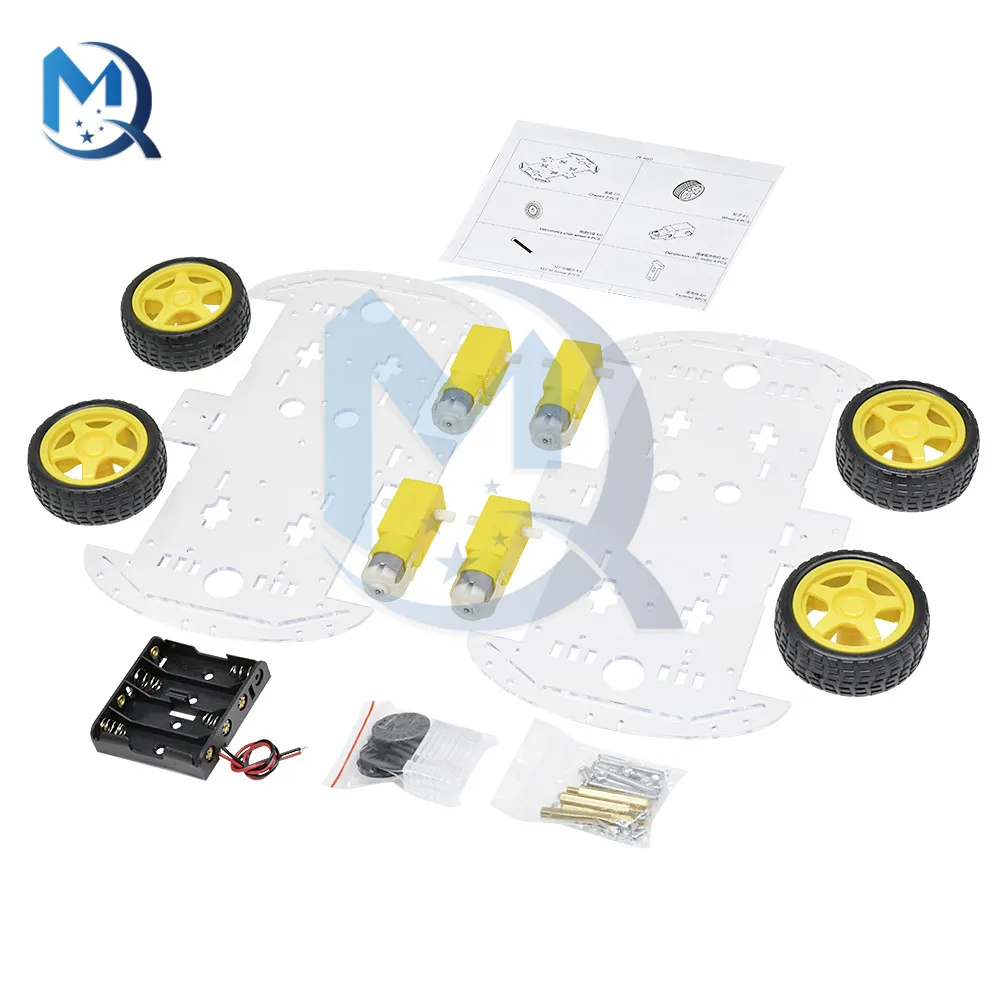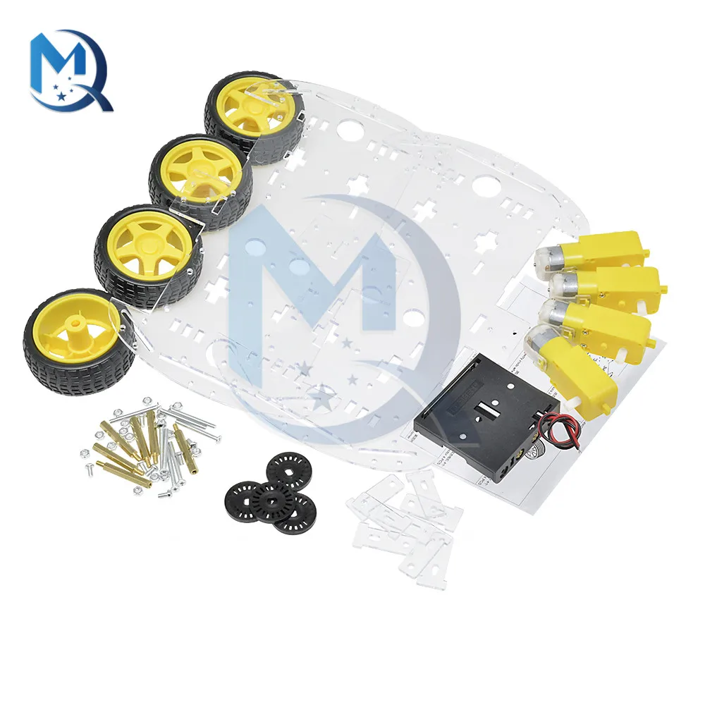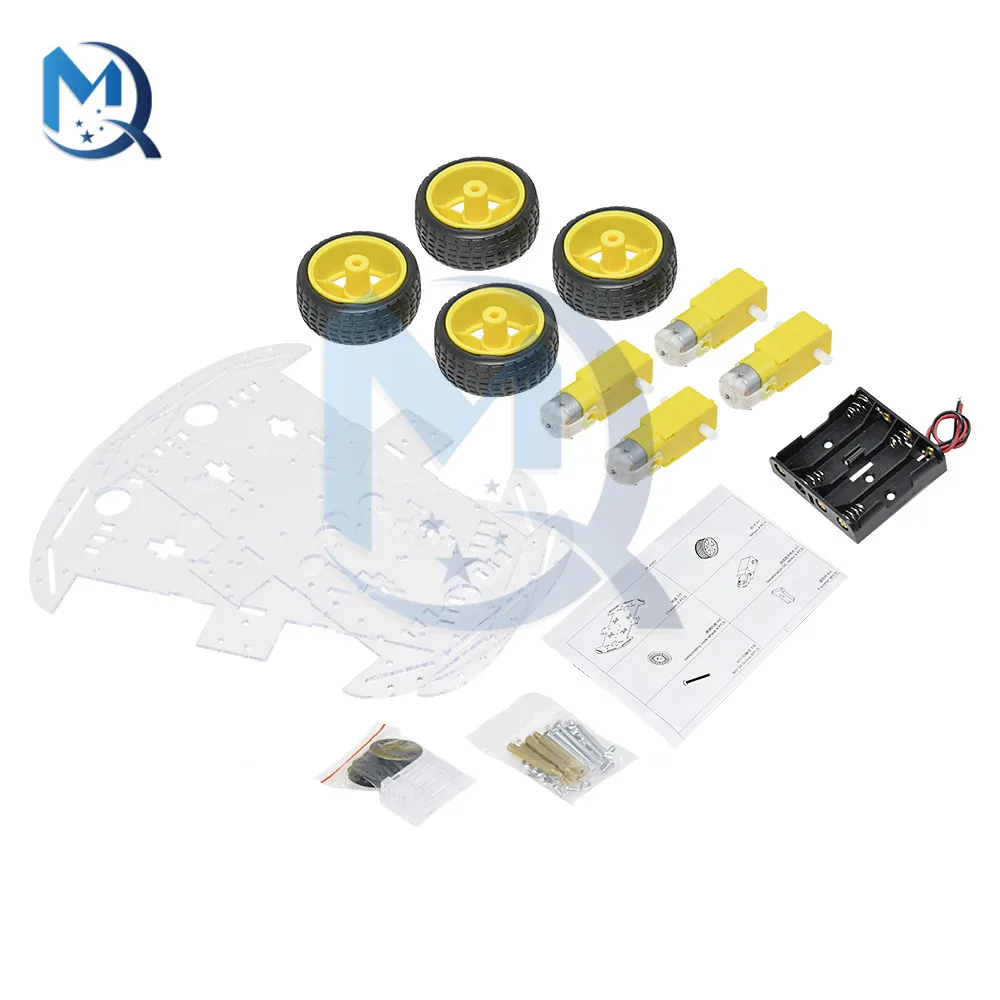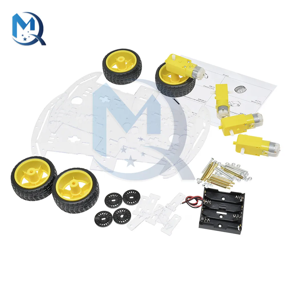 Kit de bricolage pour voiture intelligente 4WD Kits de châssis de voiture robot intelligent à 4 roues avec encodeur de vitesse Boîte de batterie Ensemble électronique de bricolage pour Arduino